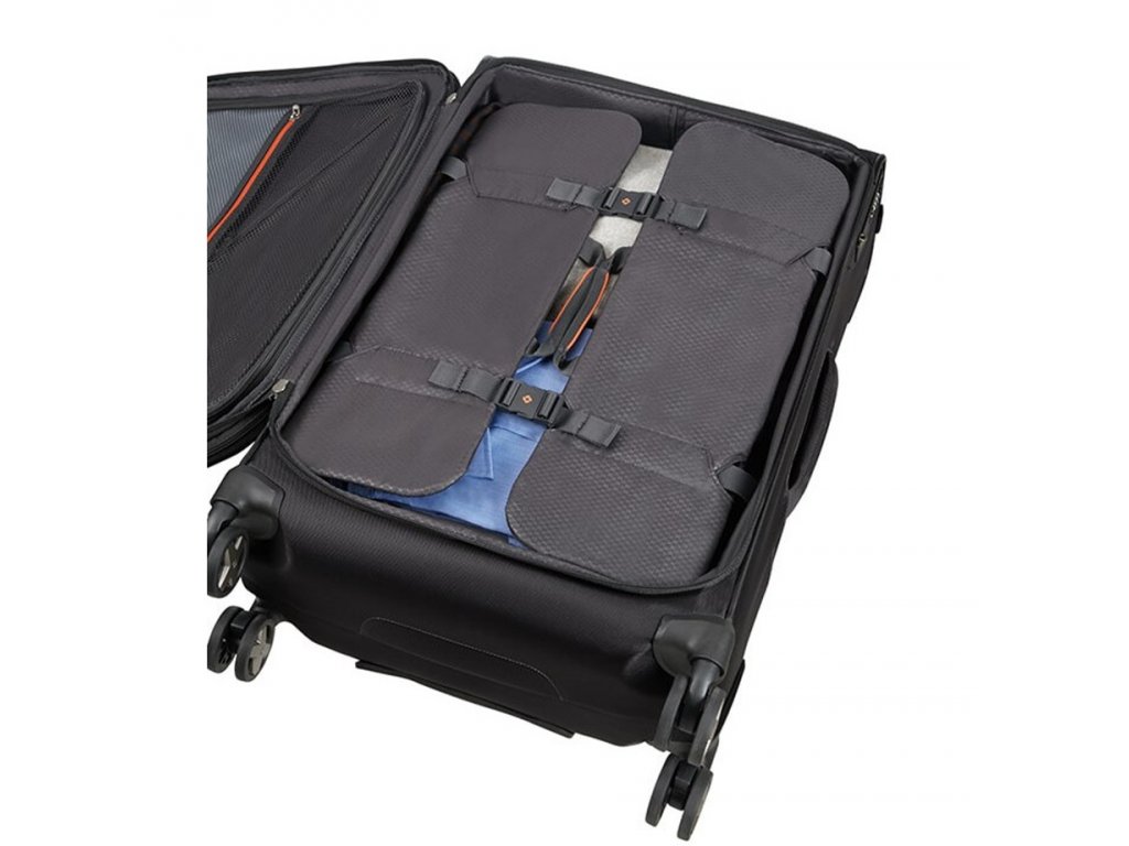 Cestovní kabinový kufr Samsonite X-Blade 4.0 na čtyřech kolečkách v černé barvě s vrchní kapsou a TSA zámkem. Nová verze kufru osvědčené řady X-Blade kde jsou na prvním místě ochrana, pohodlí a technologické prvky. Efektivní organizace balení nyní zahrnuje nový systém Multiway Compress System, v kterém lze nastavit výšku, což umožňuje vyšší stohování a nerovnoměrné balení.