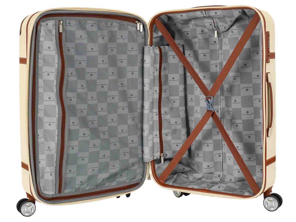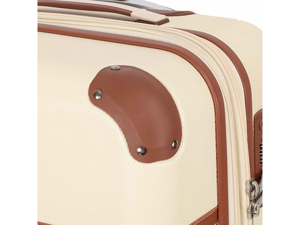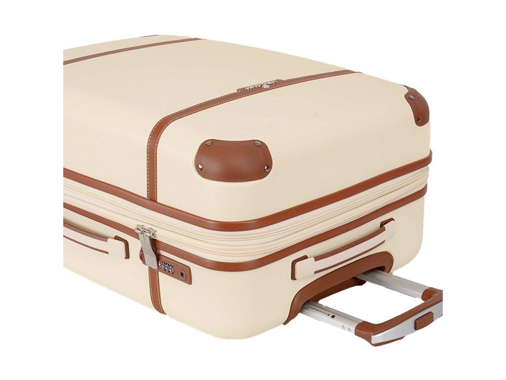 Cestovní plastový kufr 75 cm francouzské značky Snowball v krémové barvě, který nabízí hned řadu výhod, a to jedinečný design, vyztužené rohy čímž se stává kufr odolnější vůči rozbití a v neposlední řadě také elegantní vzhled.