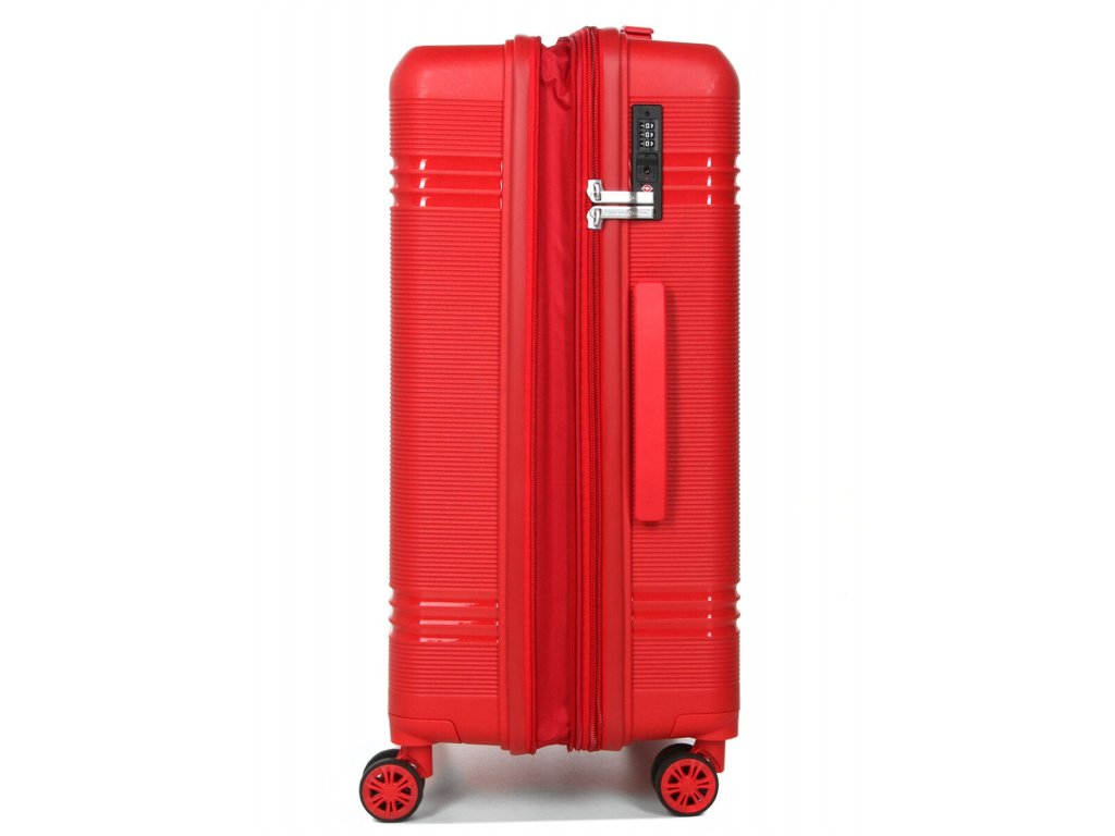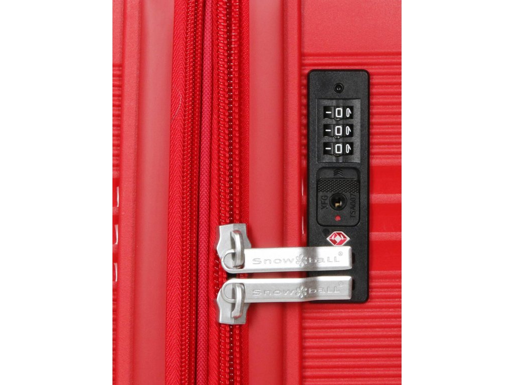 Cestovní polypropylenový kufr středně velký značky Snowball v červené barvě. Polypropylen je jedním z nejlepších a nejspolehlivějších materiálů používaných v současnosti při výrobě zavazadel. Je vhodný i pro náročné zákazníky díky velmi kvalitnímu a preciznímu zpracování.