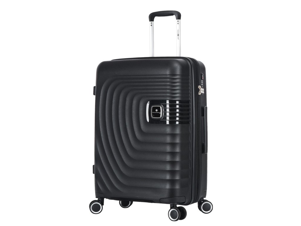 Cestovní polypropylenový kufr středně velký značky Snowball v oblíbené černé barvě. Polypropylen je jedním z nejlepších a nejspolehlivějších materiálů používaných v současnosti při výrobě zavazadel. Je vhodný i pro náročné zákazníky díky velmi kvalitnímu a preciznímu zpracování.