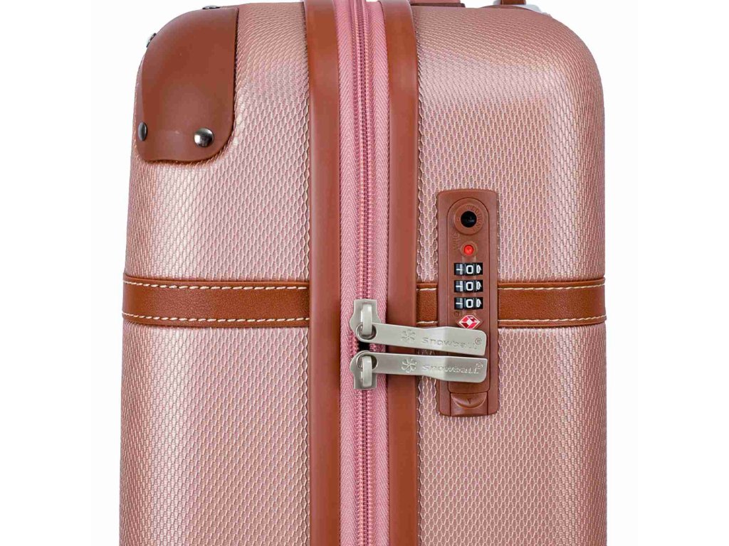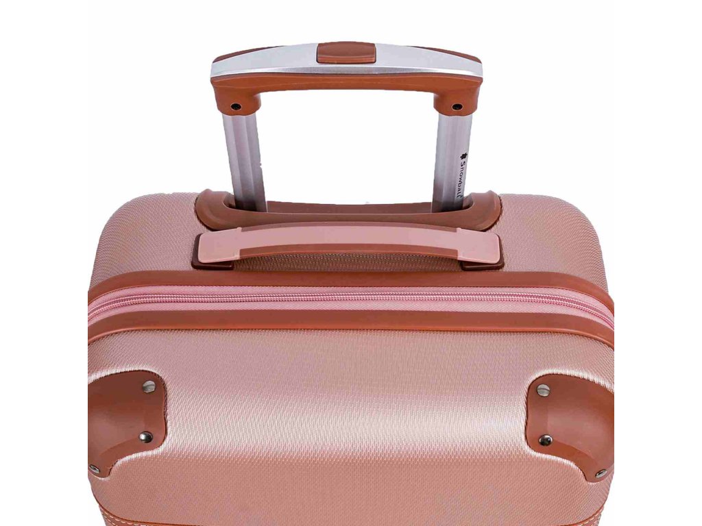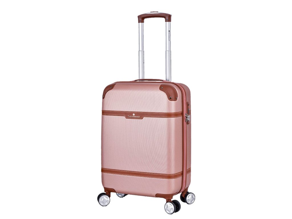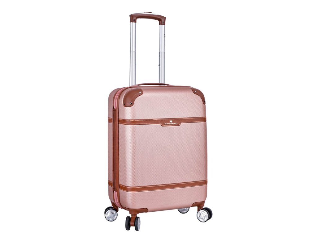 Cestovní kabinový kufr francouzské značky Snowball v růžovo zlaté barvě, který nabízí hned řadu výhod, a to jedinečný design, vyztužené rohy čímž se stává kufr odolnější vůči rozbití a v neposlední řadě také elegantní vzhled.