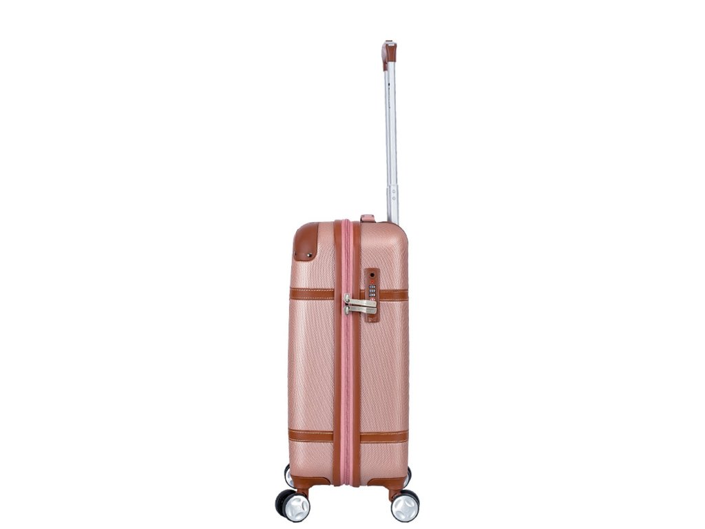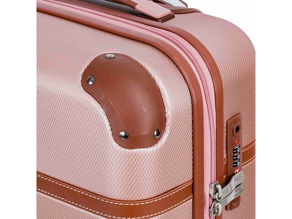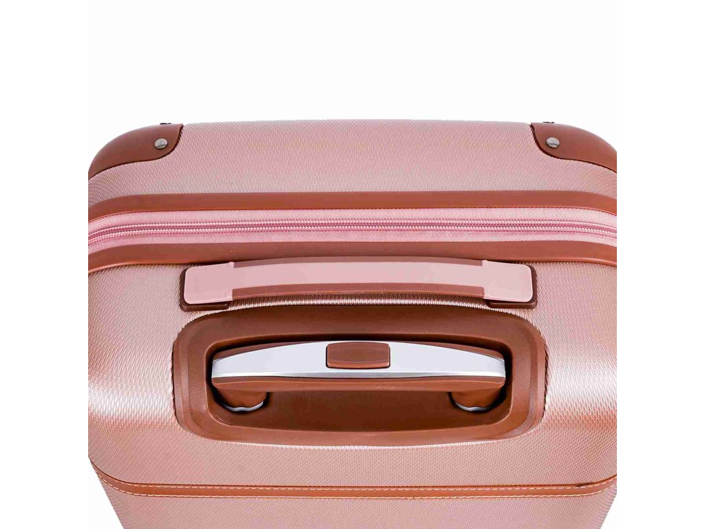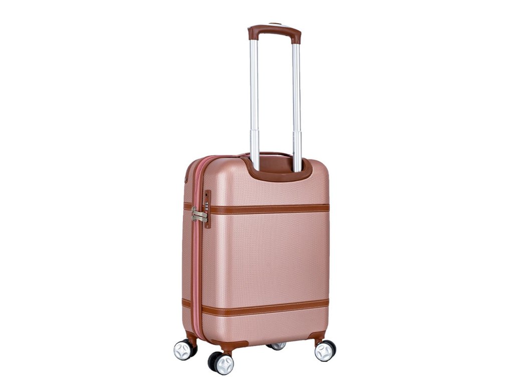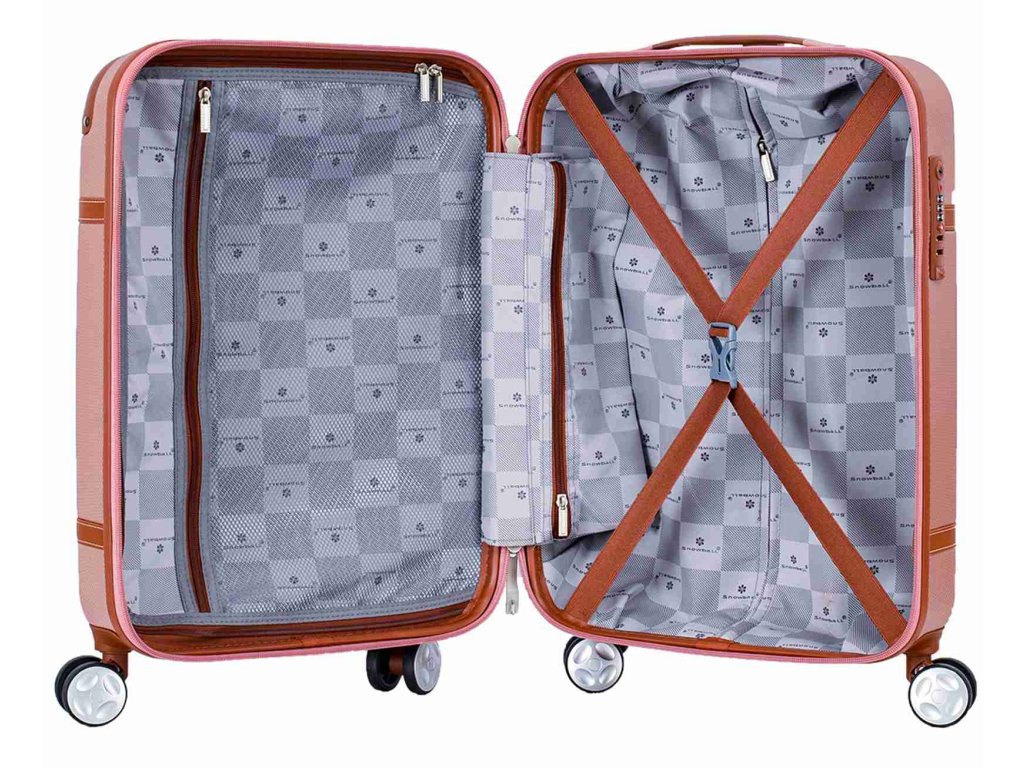 Cestovní kabinový kufr francouzské značky Snowball v růžovo zlaté barvě, který nabízí hned řadu výhod, a to jedinečný design, vyztužené rohy čímž se stává kufr odolnější vůči rozbití a v neposlední řadě také elegantní vzhled.