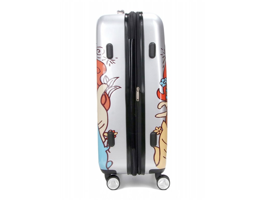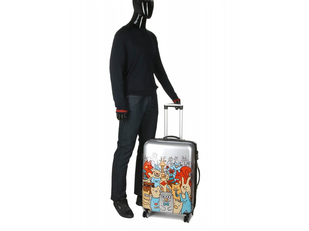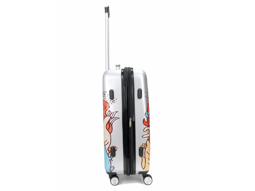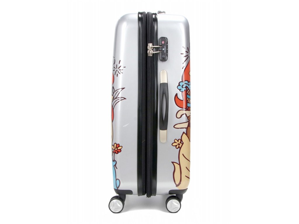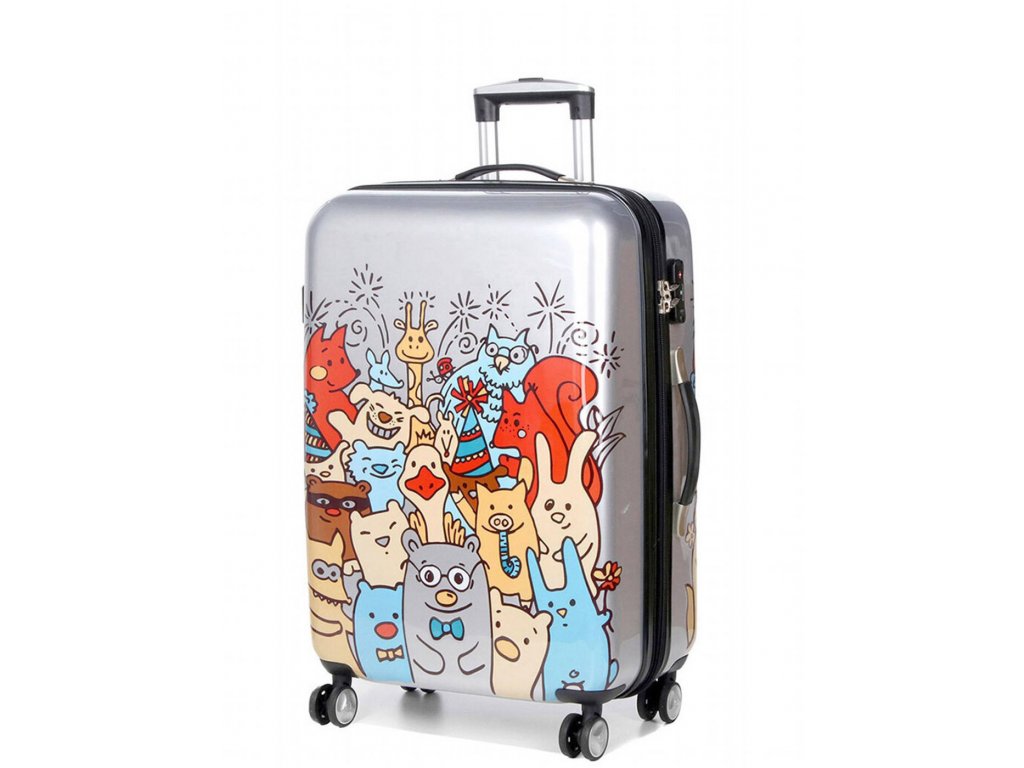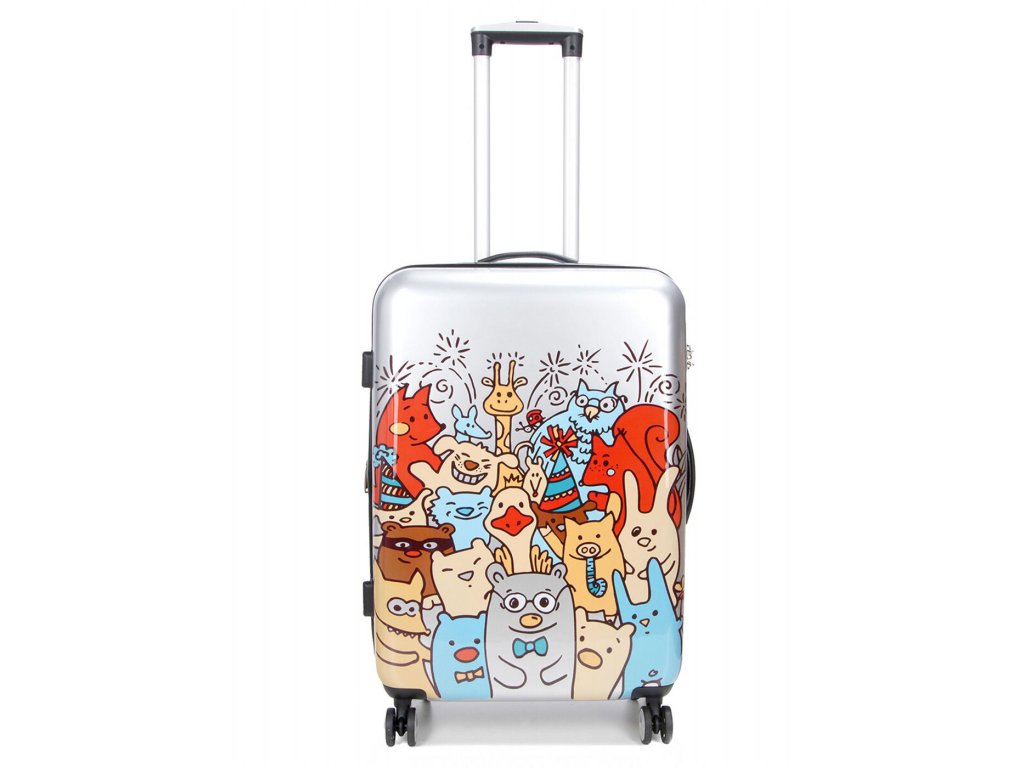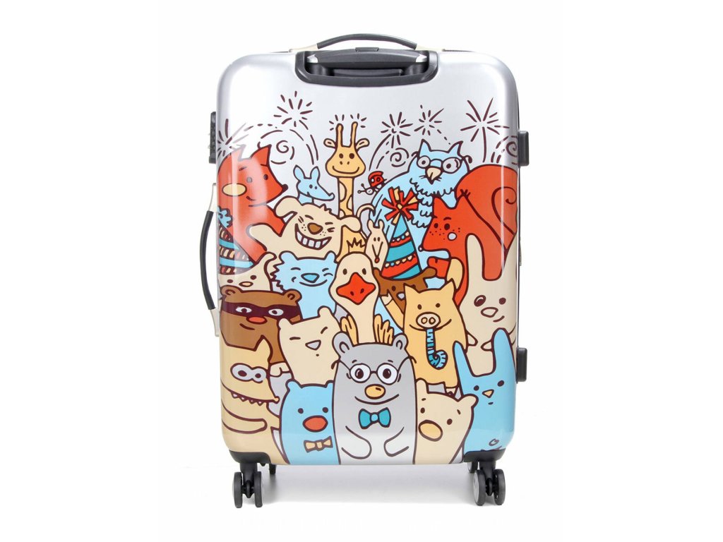 Cestovní kufr 65 cm s veselým motivem zvířátek od značky Snowball ve stříbrné barvě s barevným potiskem. S tímto veselým kufrem se stane cestování velkou zábavou. Je oddělitelný na dvě poloviny, se spoustou kapes a přihrádek uvnitř, což má vliv na funkčnost. Vybavte se na cesty tímto designovým zavazadlem od kvalitní značky.