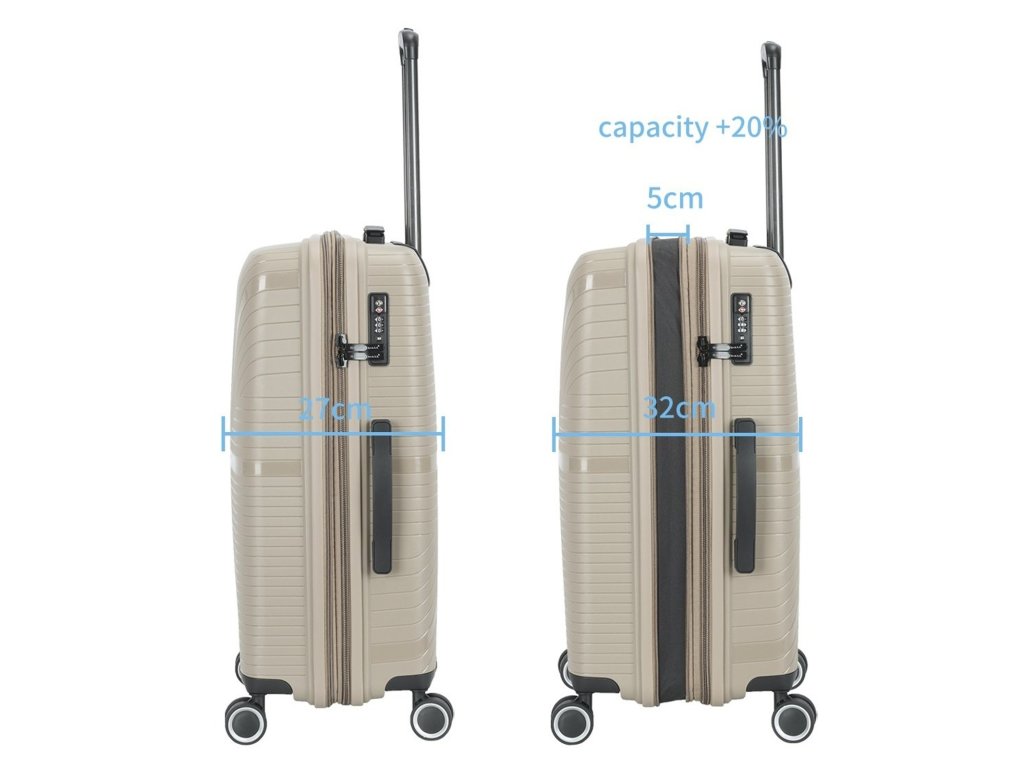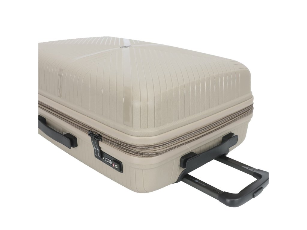 Cestovní polypropylenový kufr středně velký značky Snowball v šampaňské barvě. Polypropylen je jedním z nejlepších a nejspolehlivějších materiálů používaných v současnosti při výrobě zavazadel. Je vhodný i pro náročné zákazníky díky velmi kvalitnímu a preciznímu zpracování.