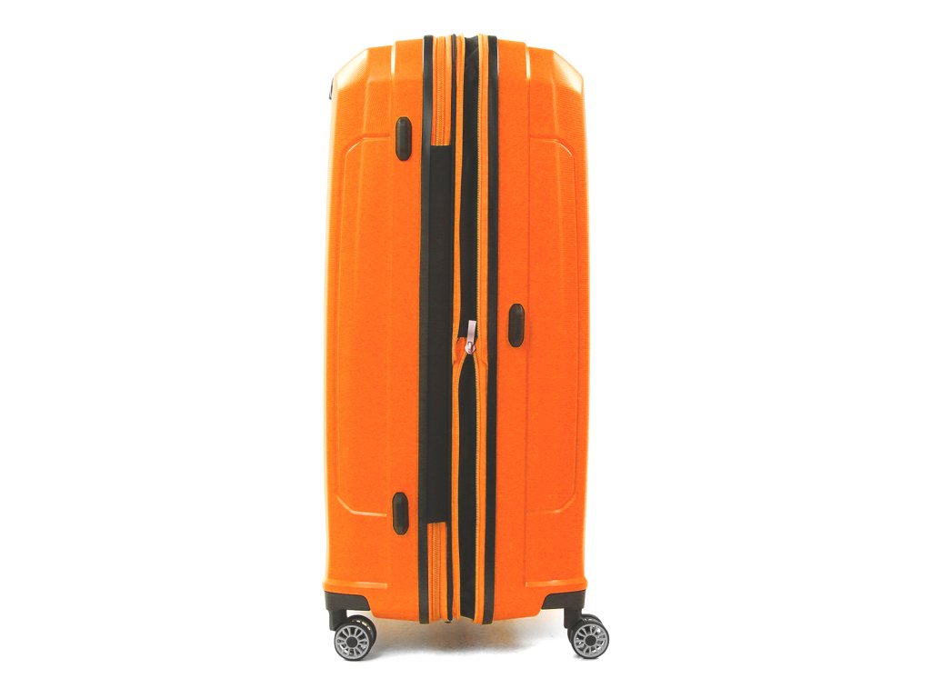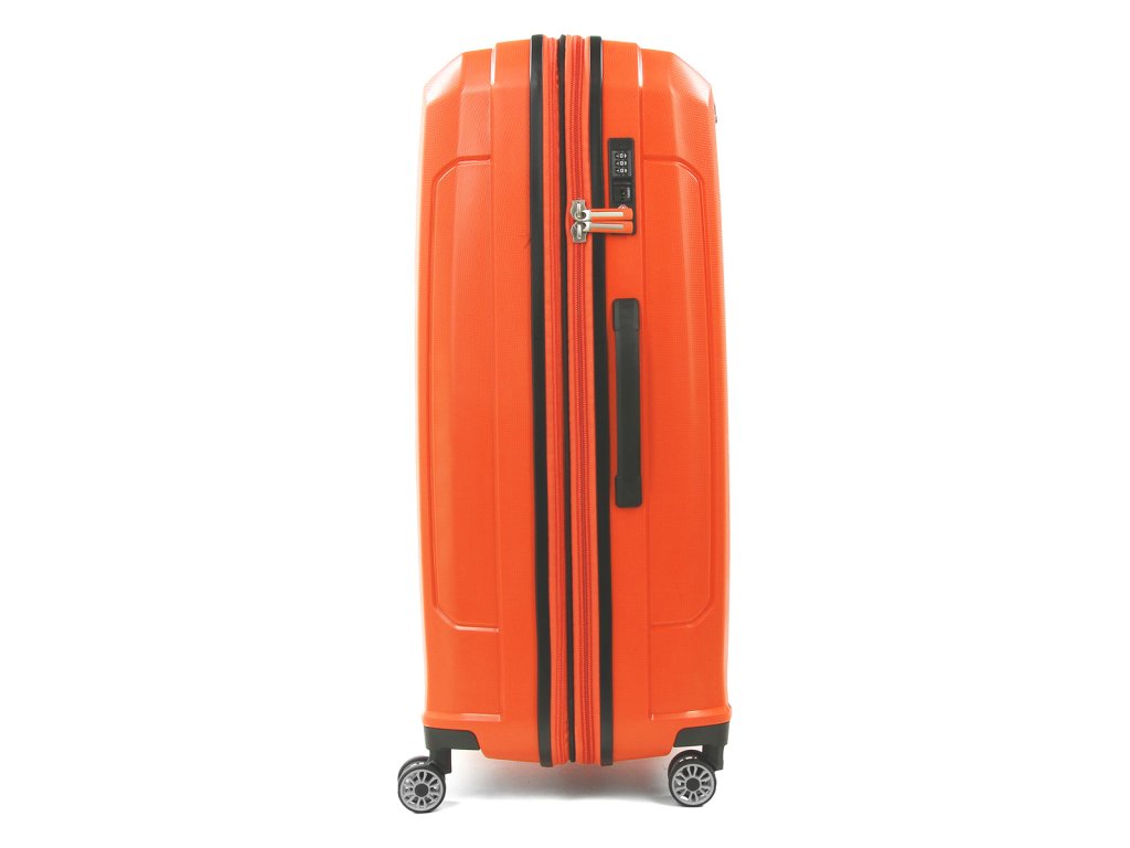 Moderní polypropylenový kufr fancouzské značky Snowball 66 cm na 4 kolečkách a TSA zámkem v oranžové barvě. Velice odolný a přitom lehký kufr v designovém vzhledu, kvalitní čtyři dvoukolečka, možnost zvětšit objem kufru a integrovaný TSA zámek dělají z tohoto kufru skvělého parťáka na Vaše cesty.