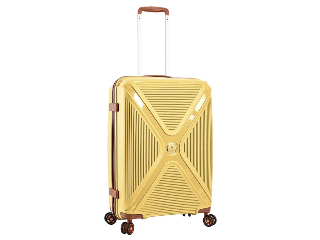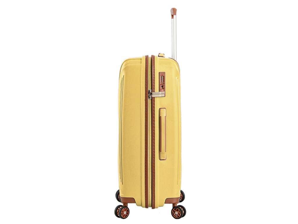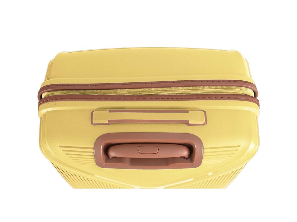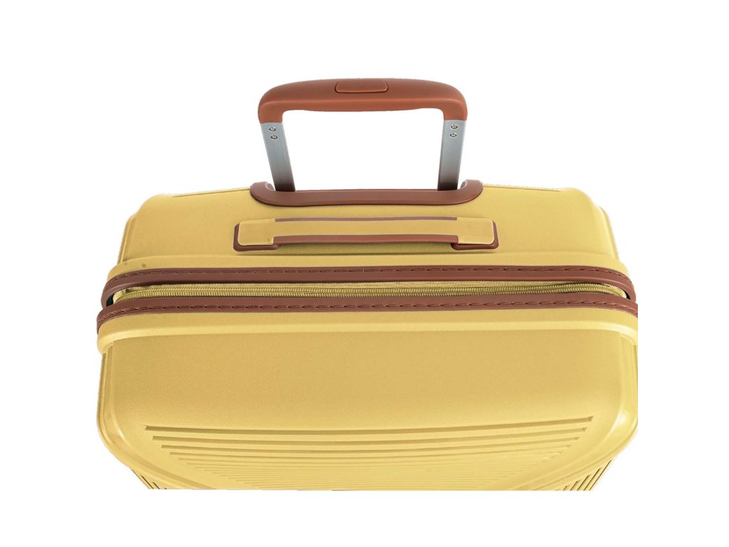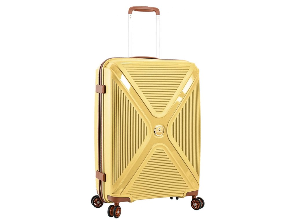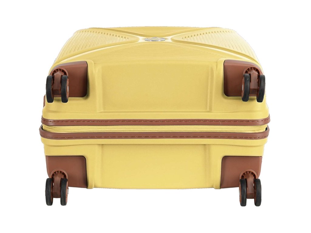 Designový polypropylenový cestovní kufr francouzské značky Snowball 67 cm série DOXX ve žluté barvě s doplňky v hnědé barvě.