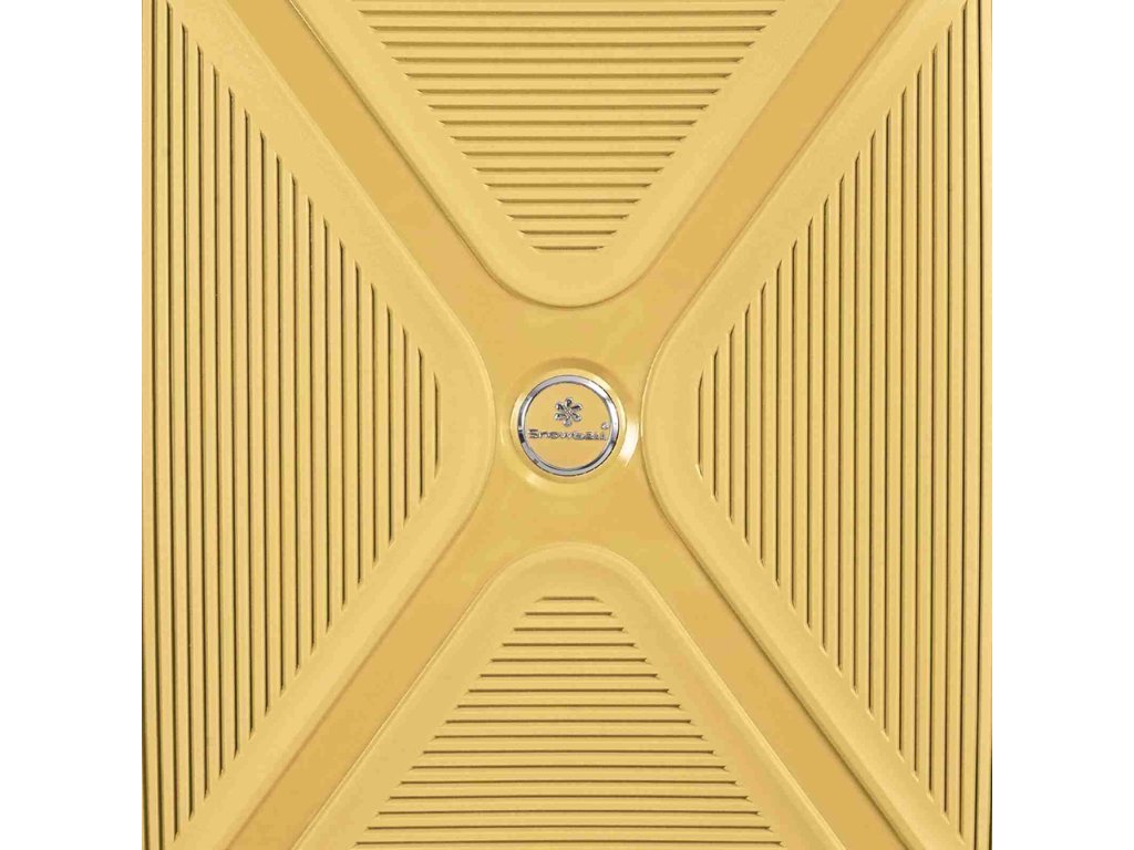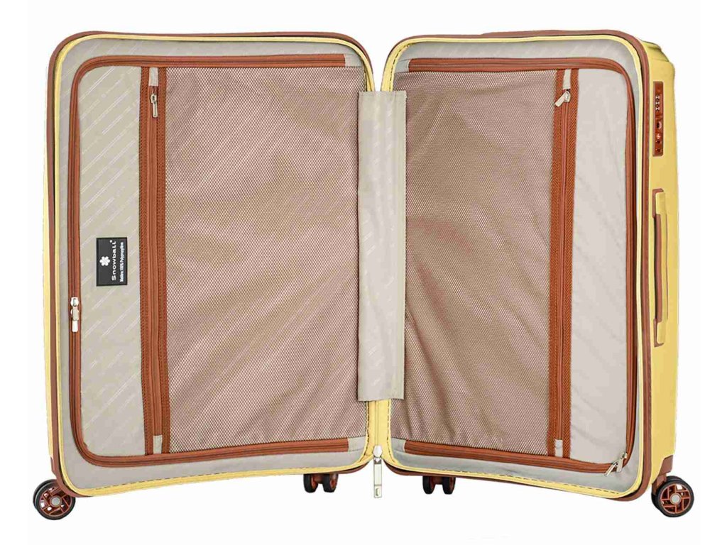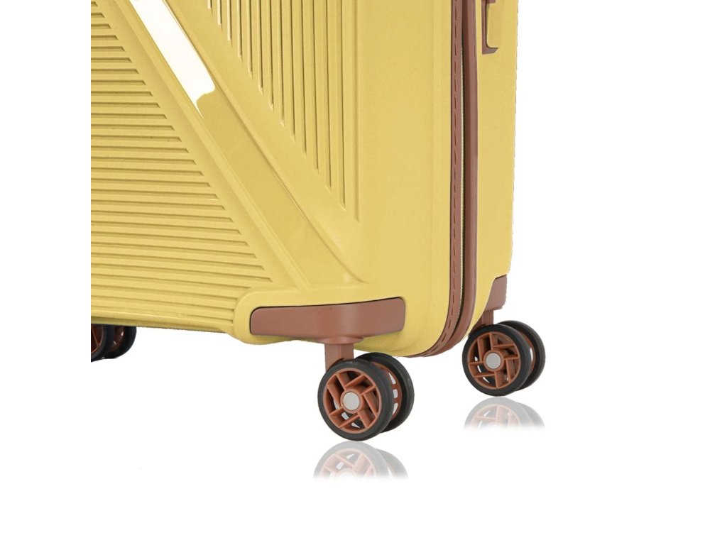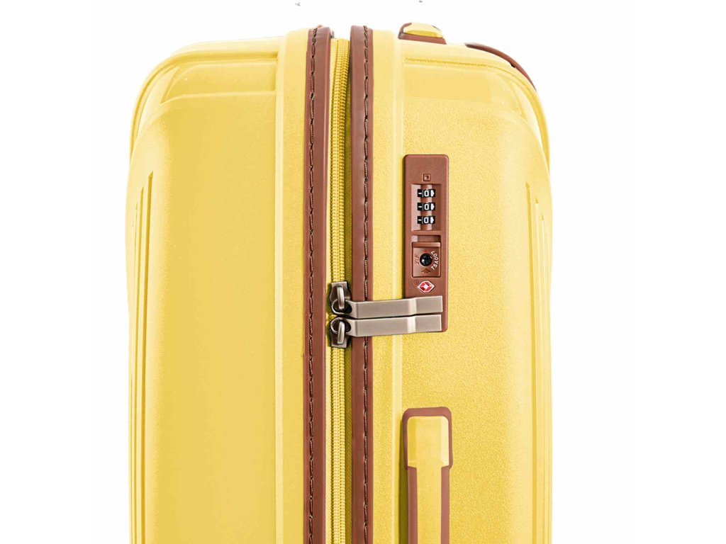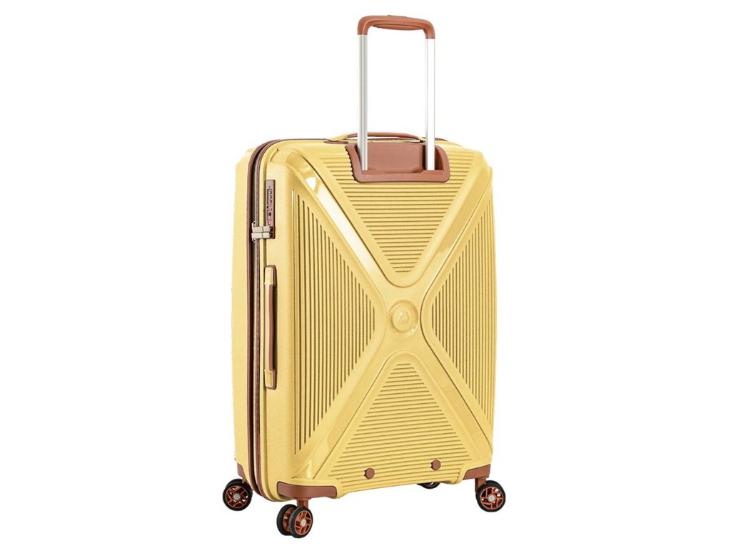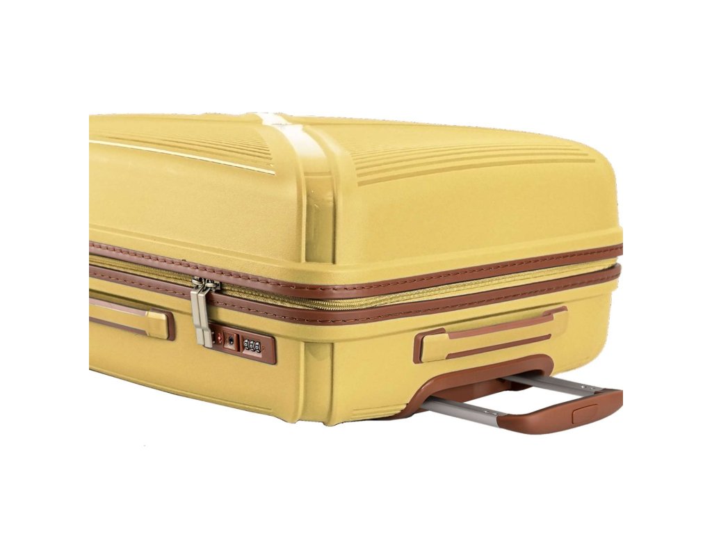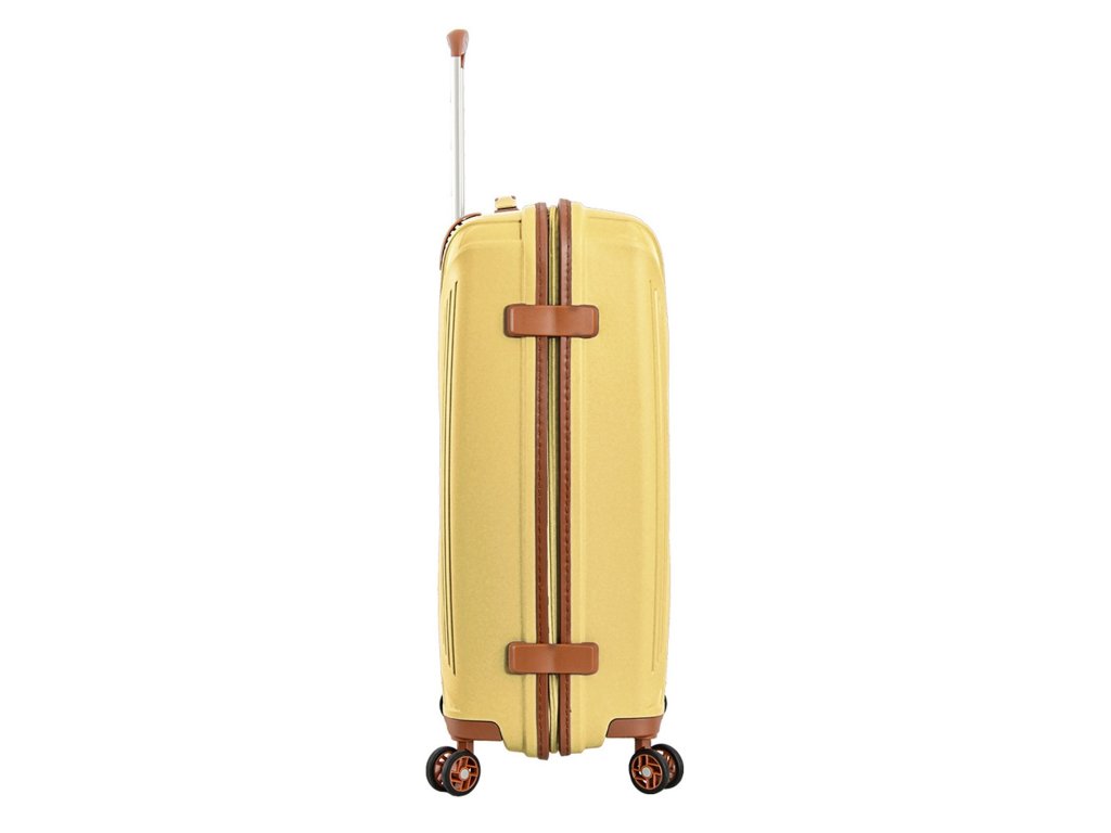 Designový polypropylenový cestovní kufr francouzské značky Snowball 67 cm série DOXX ve žluté barvě s doplňky v hnědé barvě.