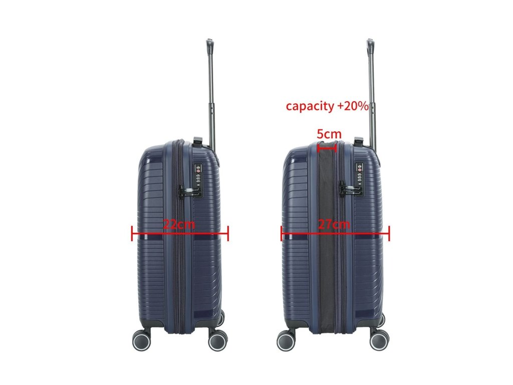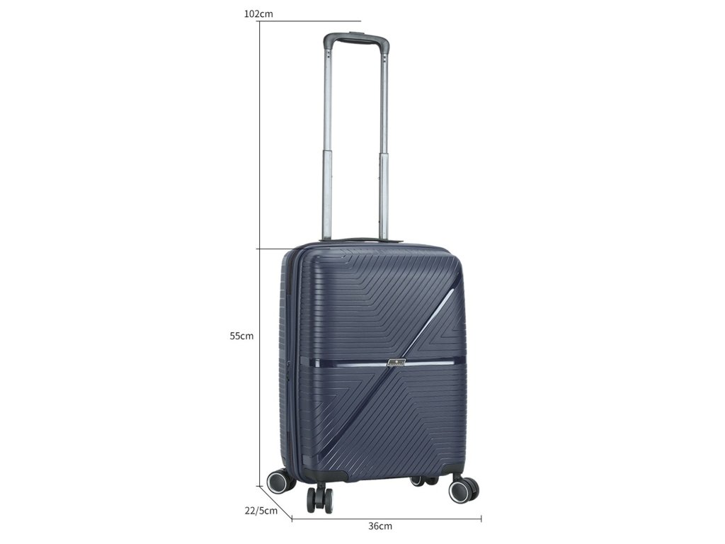 Cestovní polypropylenový kufr velikosti S značky Snowball v tmavě modré barvě. Polypropylen je jedním z nejlepších a nejspolehlivějších materiálů používaných v současnosti při výrobě zavazadel. Je vhodný i pro náročné zákazníky díky velmi kvalitnímu a preciznímu zpracování.