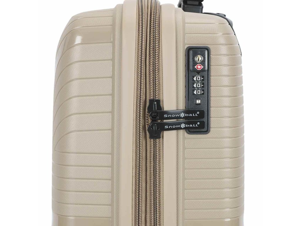 Cestovní polypropylenový kufr velikosti S značky Snowball v šampaňské barvě. Polypropylen je jedním z nejlepších a nejspolehlivějších materiálů používaných v současnosti při výrobě zavazadel. Je vhodný i pro náročné zákazníky díky velmi kvalitnímu a preciznímu zpracování.