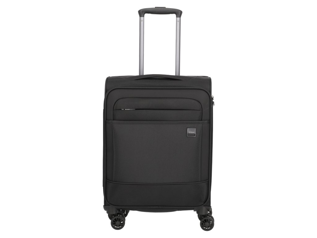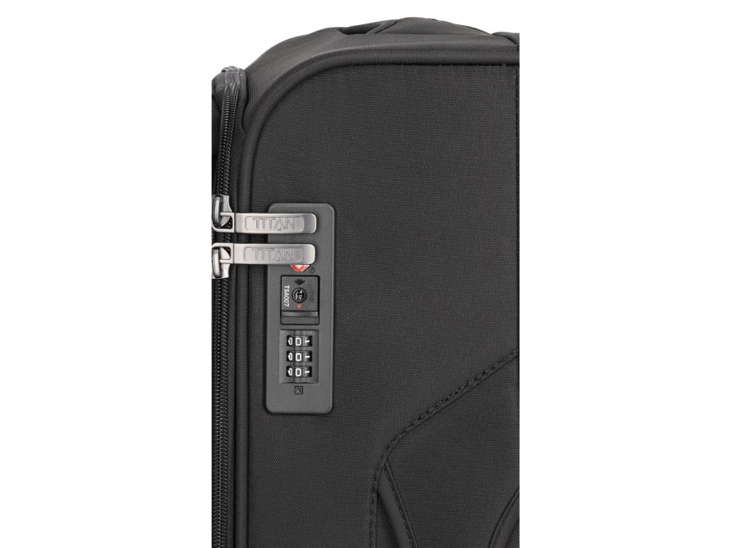Ultralehký textilní kufr německé značky Titan 55 cm série calexx v černé barvě na čtyřech kolečkách s integrovaným TSA zámkem. Moderní, elegantní unisex provedení vhodné pro muže i ženy.