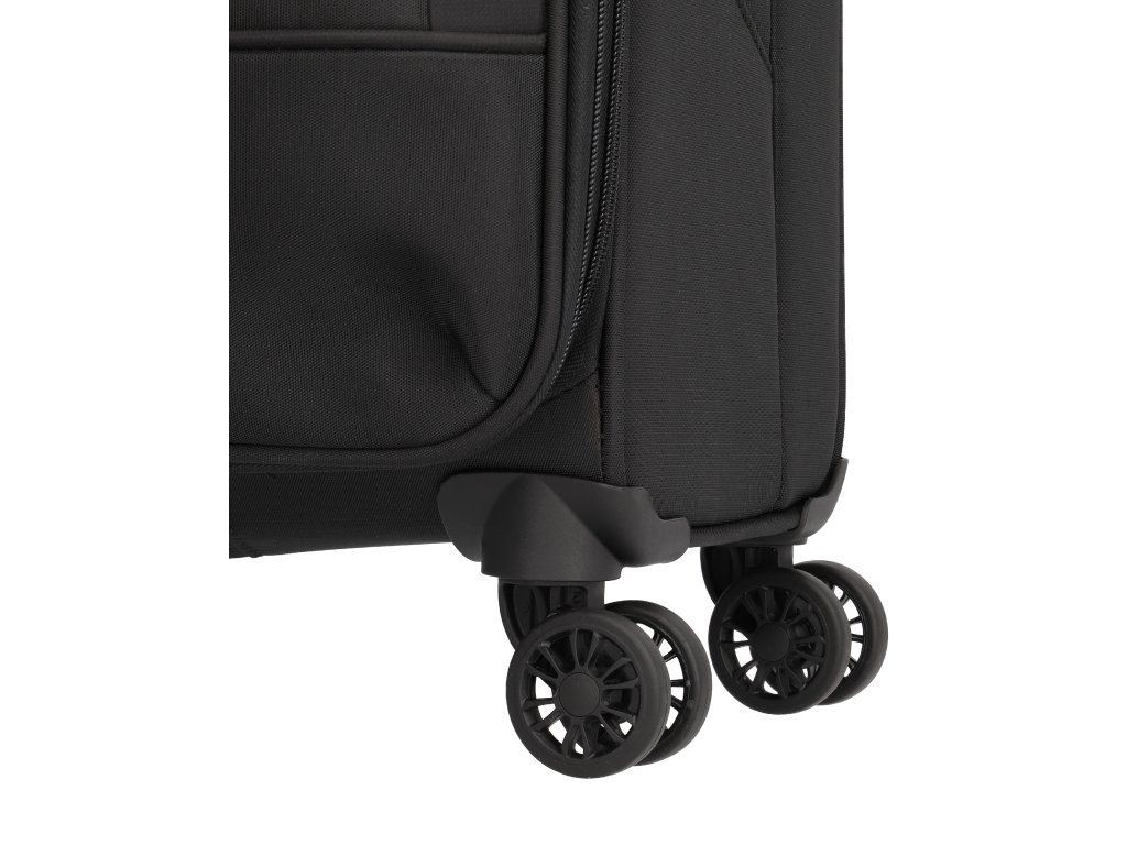 - 4 komfortní otočná dvoukolečka na rozích kufru pro snadnou manipulaci