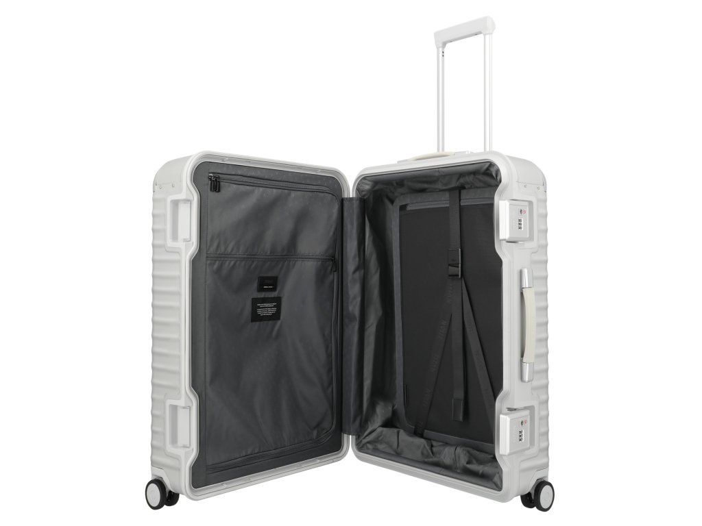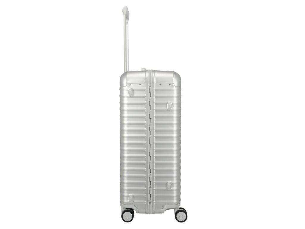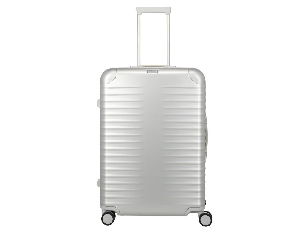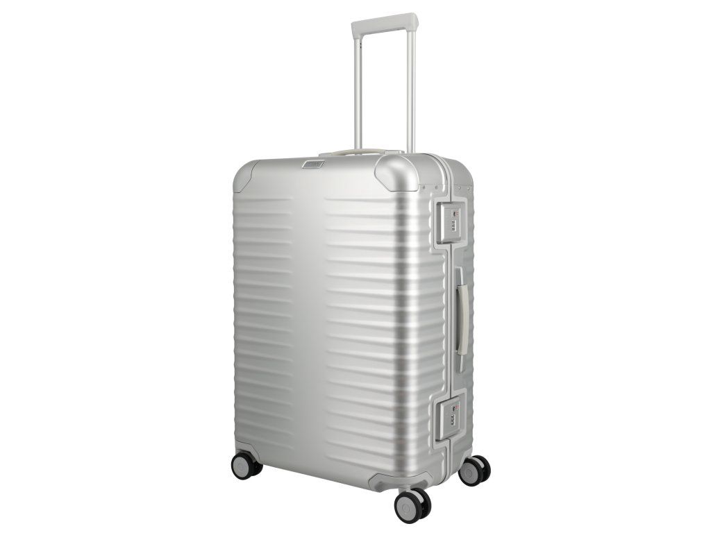 Exkluzivní skořepinový kufr 75 cm na čtyřech kolečkách s integrovaným TSA zámkem v patentovém zavírání německé značky Titan exkluzivní série ETERNITY v oblíbené stříbrné barvě. TITAN ETERNITY: první hliníkový kufr na světě s polymerovým rámem. Tato jedinečná kombinace tlumí nárazy a minimalizuje promáčknutí. Zde se exkluzivita potkává s inovací. Kufr je vybaven kvalitními koženými madly, prvotřídními kolečky s kuličkovými ložisky a plynule nastavitelnou teleskopickou rukojetí. Hliníkový kufr TITAN Eternity kombinuje inovativní technologii s nadčasovou elegancí. Design stvořený, aby vydržel věčnost.