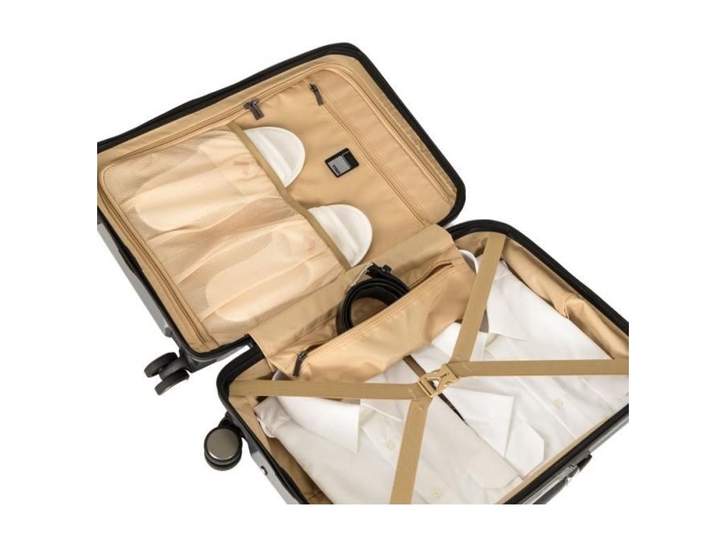 - Uvnitř kufru jsou bezpečnostní popruhy, přihrádky a kapsy na zip
