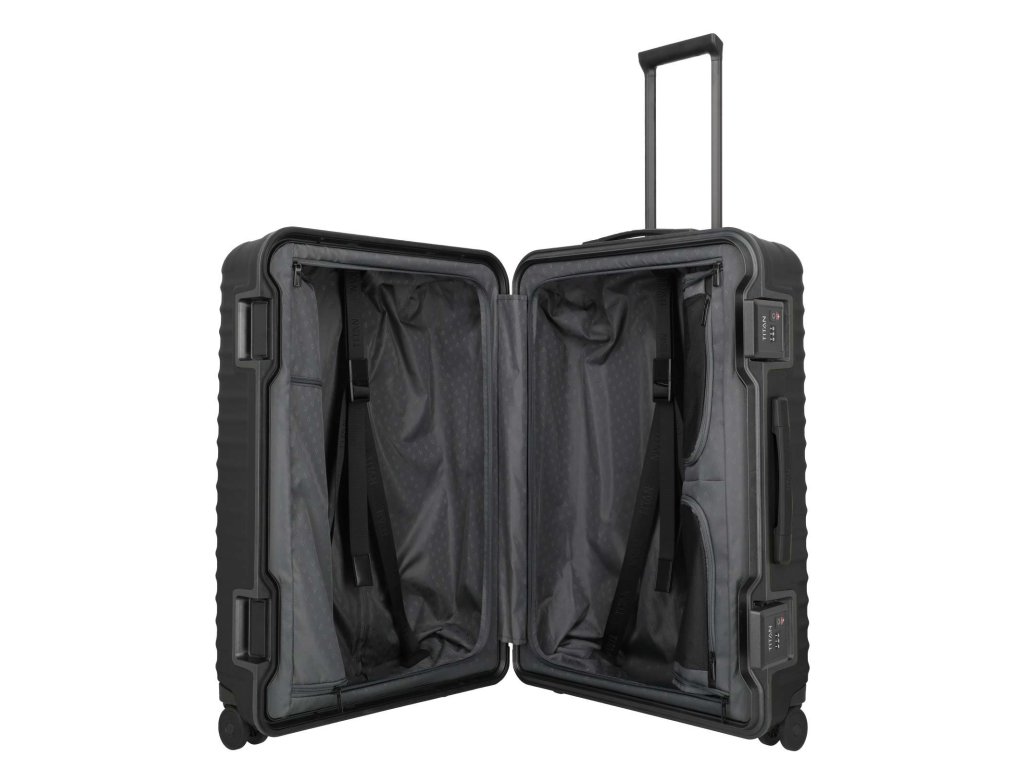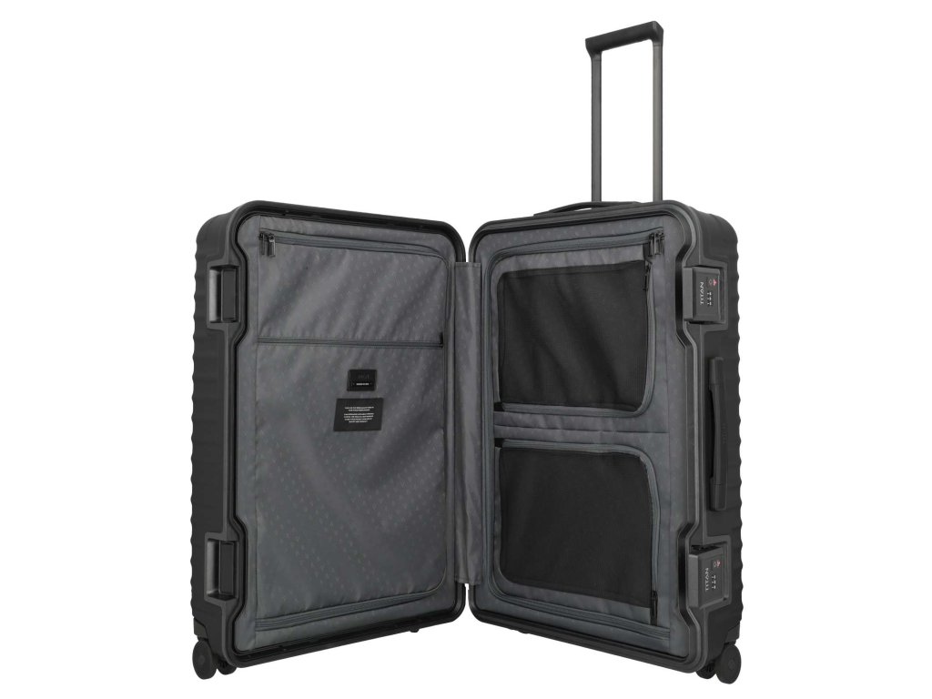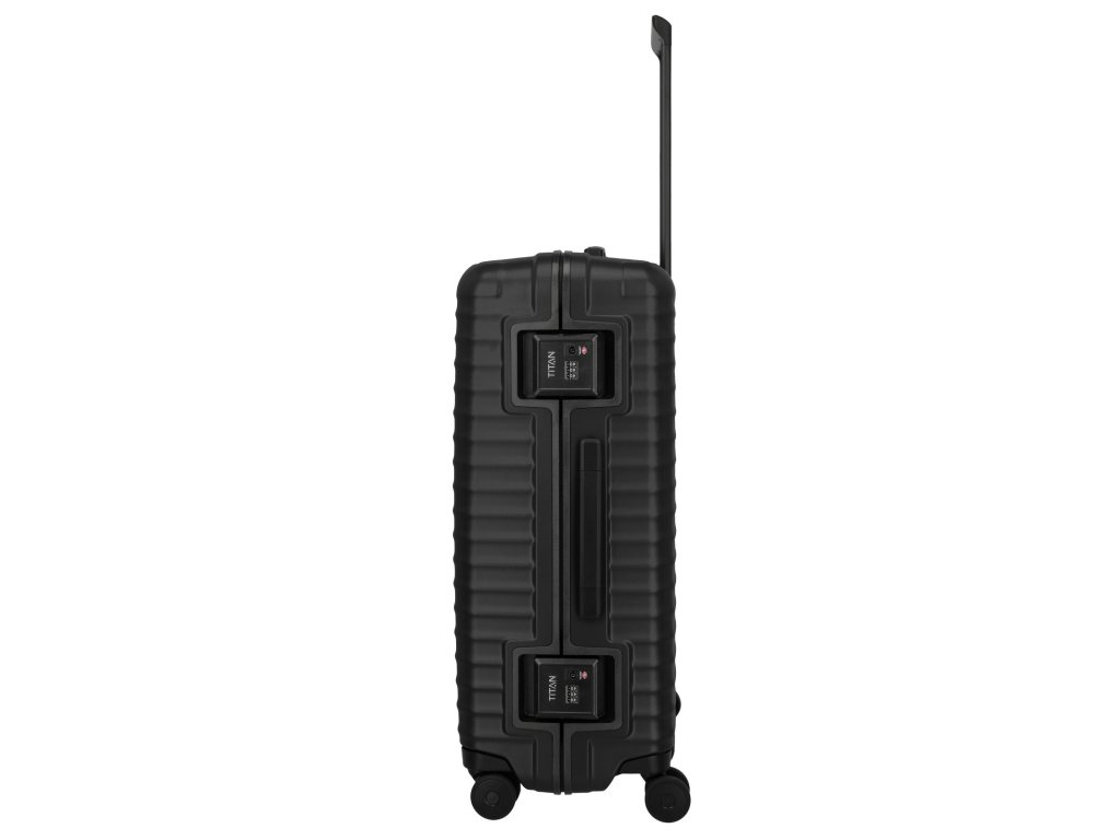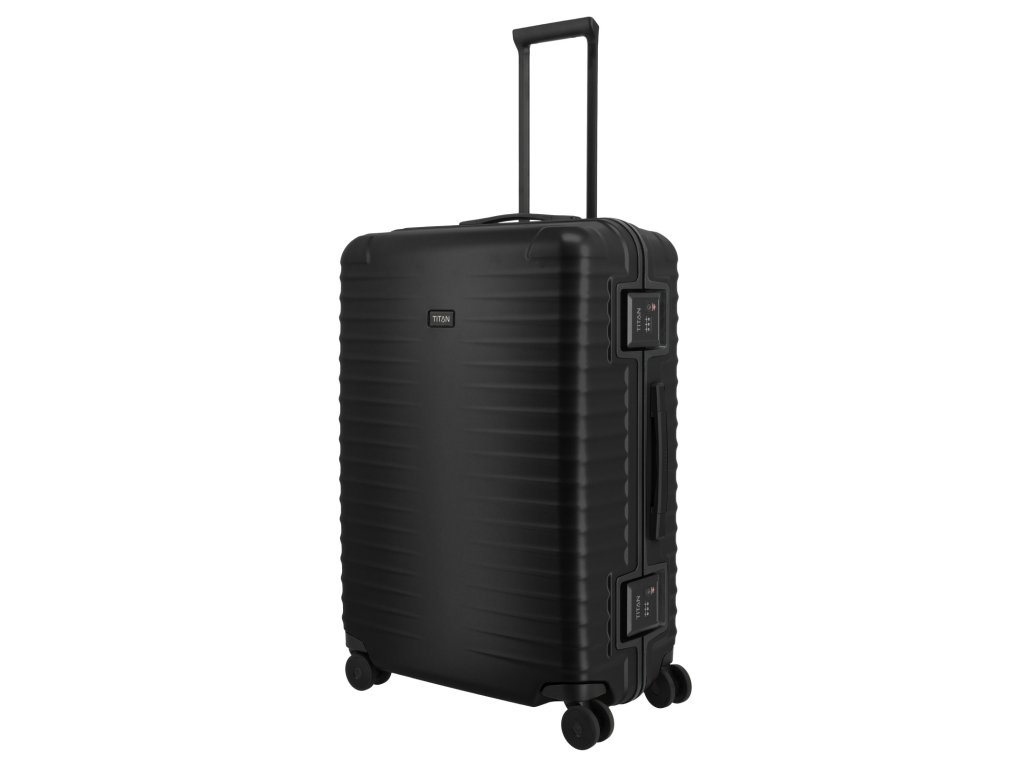 Luxusní skořepinový kufr 75 cm na čtyřech kolečkách s integrovaným TSA zámkem v patentovém zavírání německé značky Titan prémiové série Overseas v oblíbené černé ( Nightshade Black ) barvě. Model TITAN OVERSEAS je vybaven rámovou konstrukcí speciálně vyvinutou značkou TITAN. Unikátní polymerový rám zajišťuje maximální stabilitu. Díky extra velkým TSA zámkům nabízí vyšší úroveň zabezpečení a zároveň pohodlnou manipulaci. Skořepina ze 100% polykarbonátu zaručuje dlouhou životnost, a to i díky mimořádně odolnému matnému povrchu, který odolává poškrábání. Cestovní společník navržený pro maximální komfort při používání.