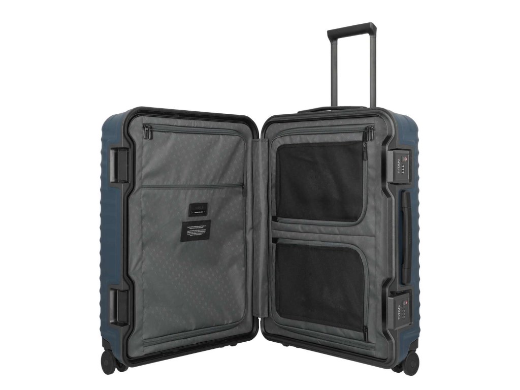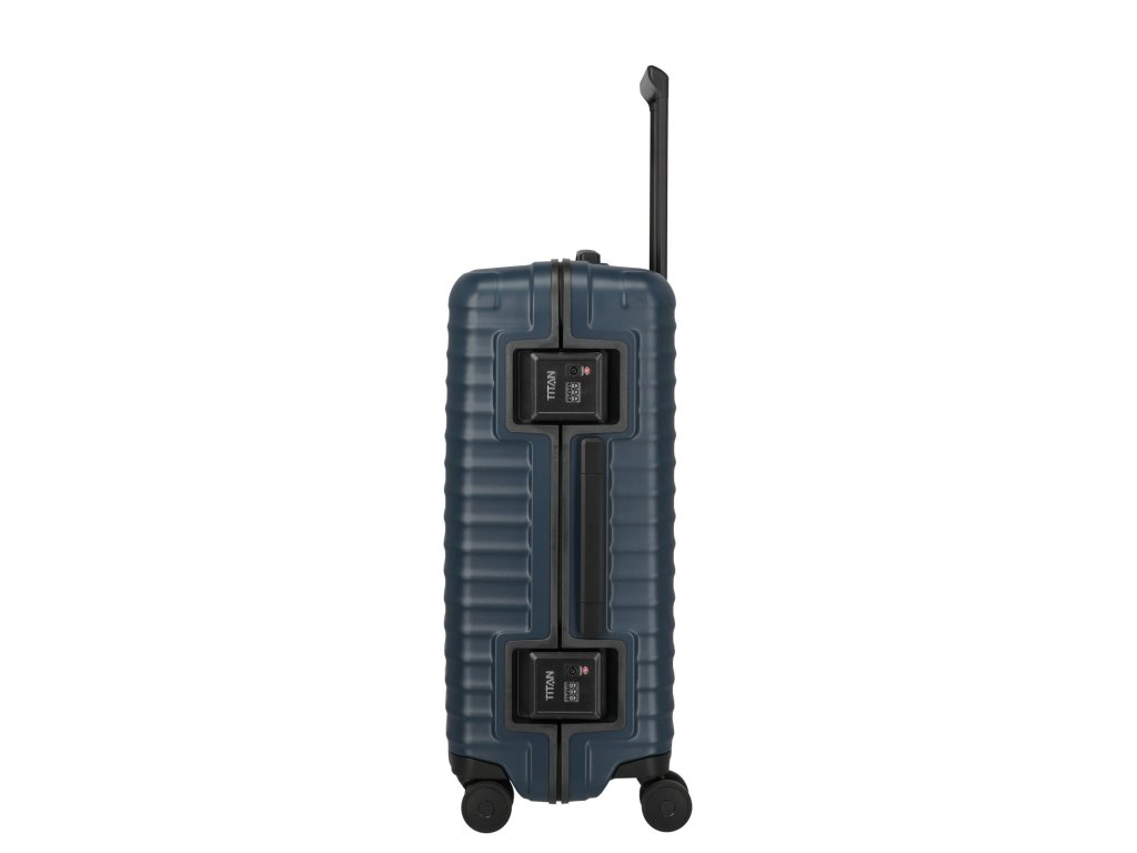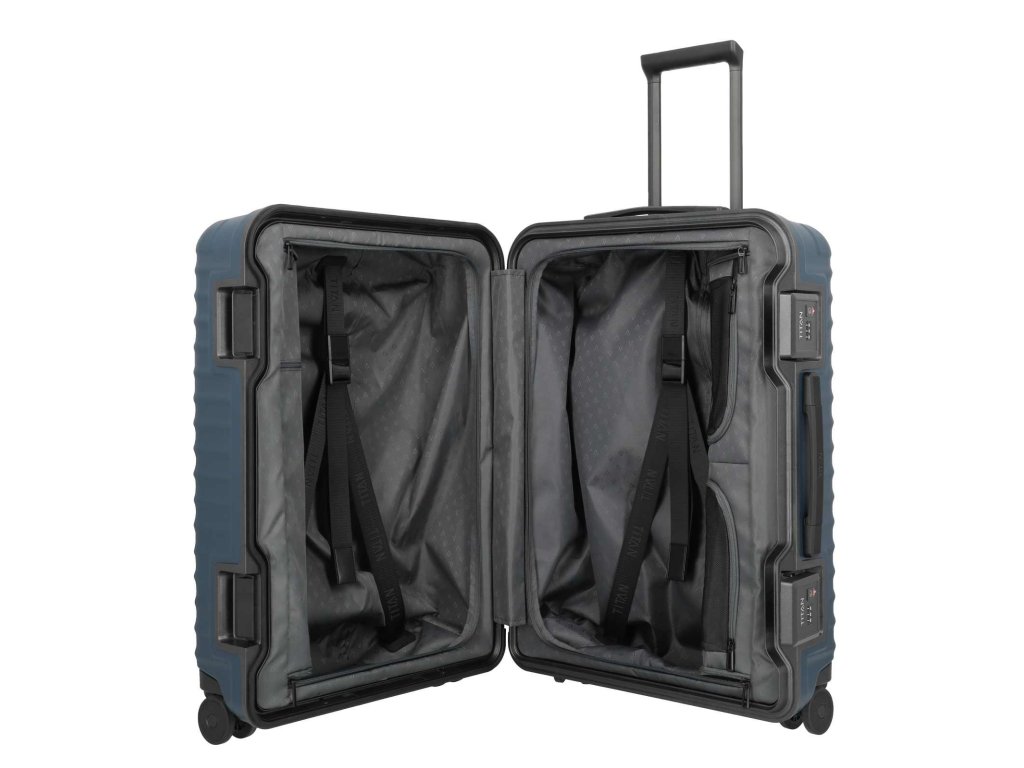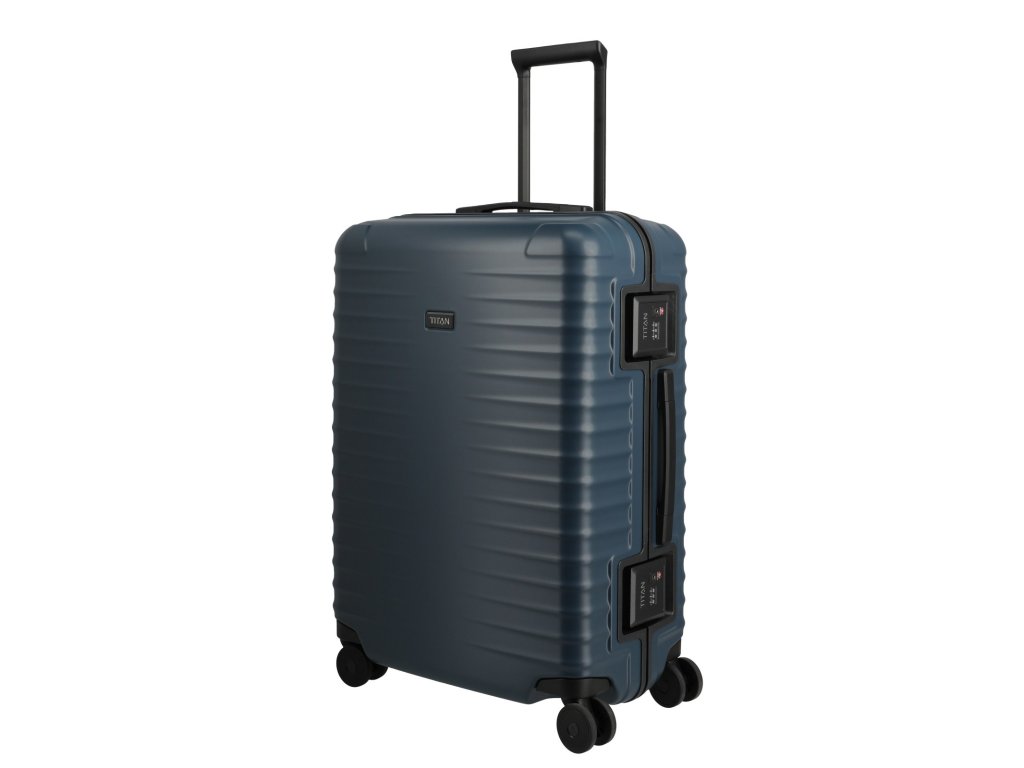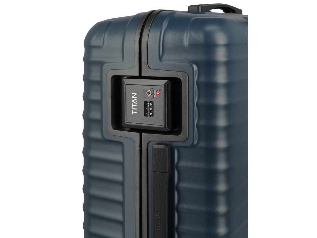 Luxusní skořepinový kufr 69 cm na čtyřech kolečkách s integrovaným TSA zámkem v patentovém zavírání německé značky Titan prémiové série Overseas v modré ( Midnight Blue ) barvě. Model TITAN OVERSEAS je vybaven rámovou konstrukcí speciálně vyvinutou značkou TITAN. Unikátní polymerový rám zajišťuje maximální stabilitu. Díky extra velkým TSA zámkům nabízí vyšší úroveň zabezpečení a zároveň pohodlnou manipulaci. Skořepina ze 100% polykarbonátu zaručuje dlouhou životnost, a to i díky mimořádně odolnému matnému povrchu, který odolává poškrábání. Cestovní společník navržený pro maximální komfort při používání.