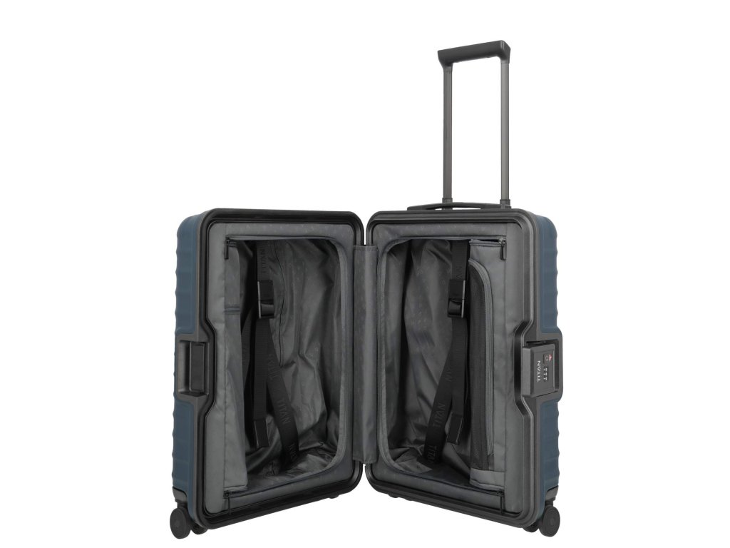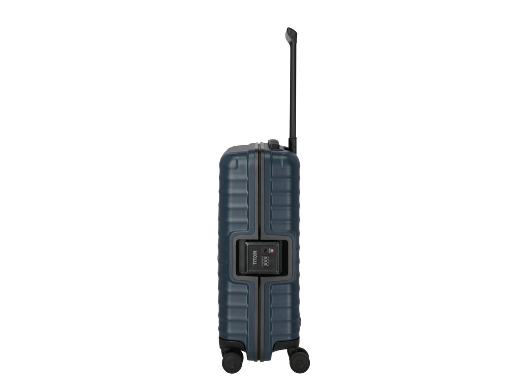 Luxusní skořepinový kabinový kufr na čtyřech kolečkách s integrovaným TSA zámkem v patentovém zavírání německé značky Titan prémiové série Overseas v modré ( Midnight Blue ) barvě. Model TITAN OVERSEAS je vybaven rámovou konstrukcí speciálně vyvinutou značkou TITAN. Unikátní polymerový rám zajišťuje maximální stabilitu. Díky extra velkým TSA zámkům nabízí vyšší úroveň zabezpečení a zároveň pohodlnou manipulaci. Skořepina ze 100% polykarbonátu zaručuje dlouhou životnost, a to i díky mimořádně odolnému matnému povrchu, který odolává poškrábání. Cestovní společník navržený pro maximální komfort při používání.