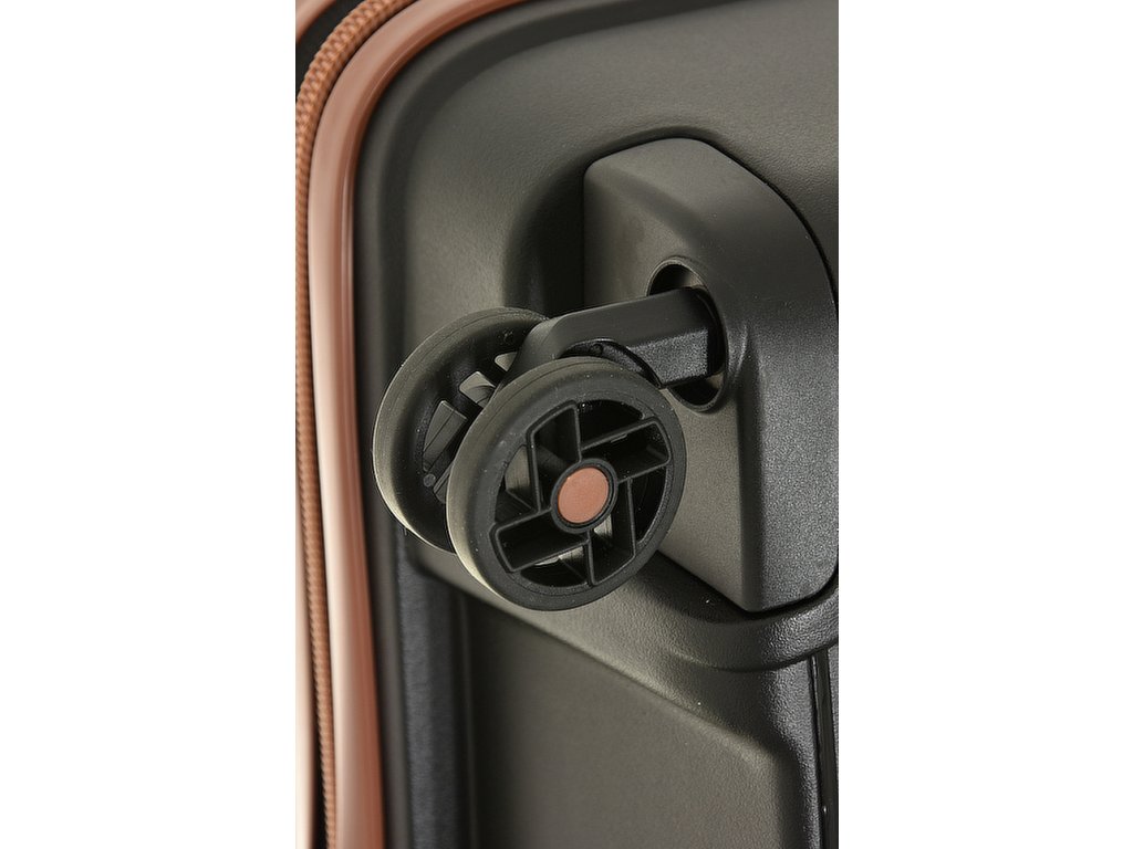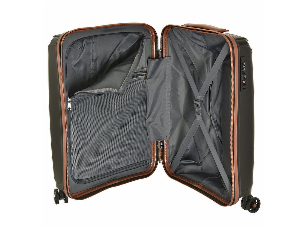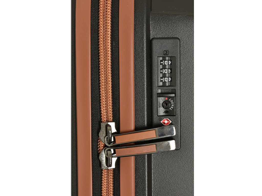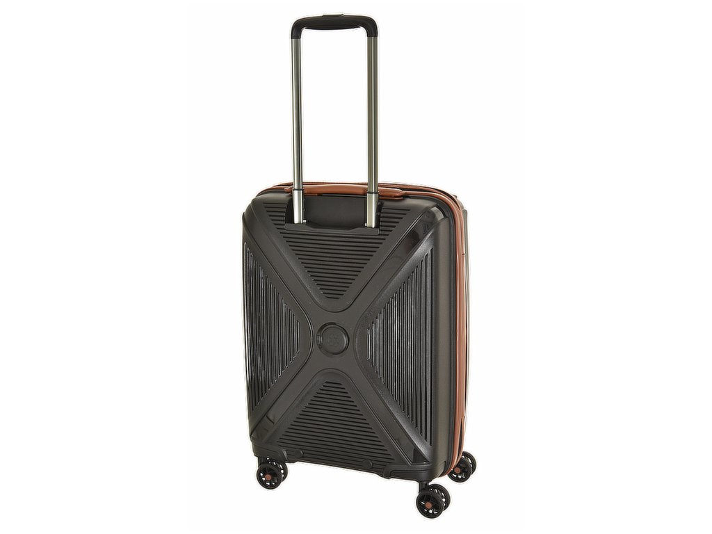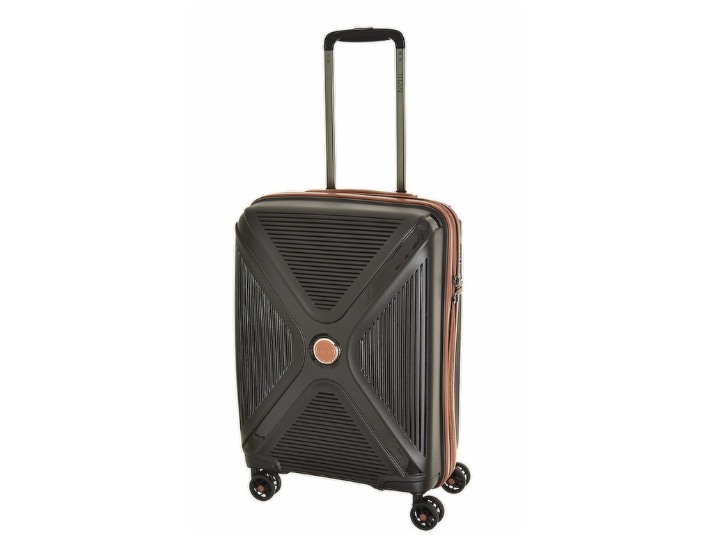 Designový polypropylenový cestovní kufr německé značky titan 55 cm série paradoxx v černé barvě s doplňky v hnědé barvě.