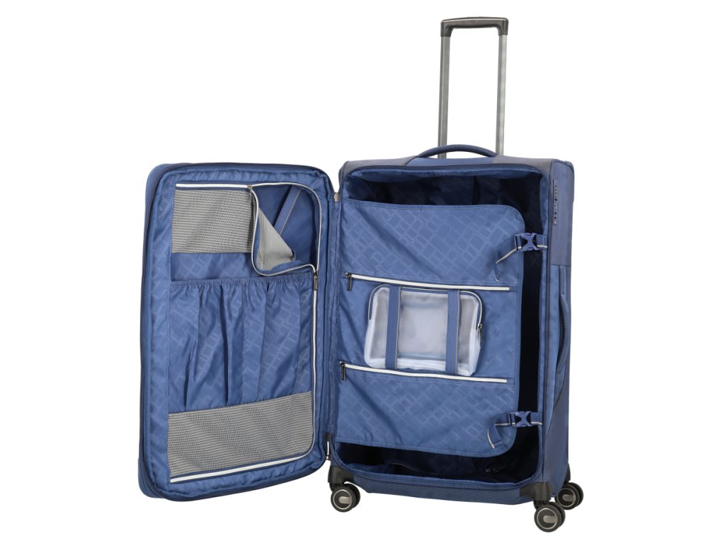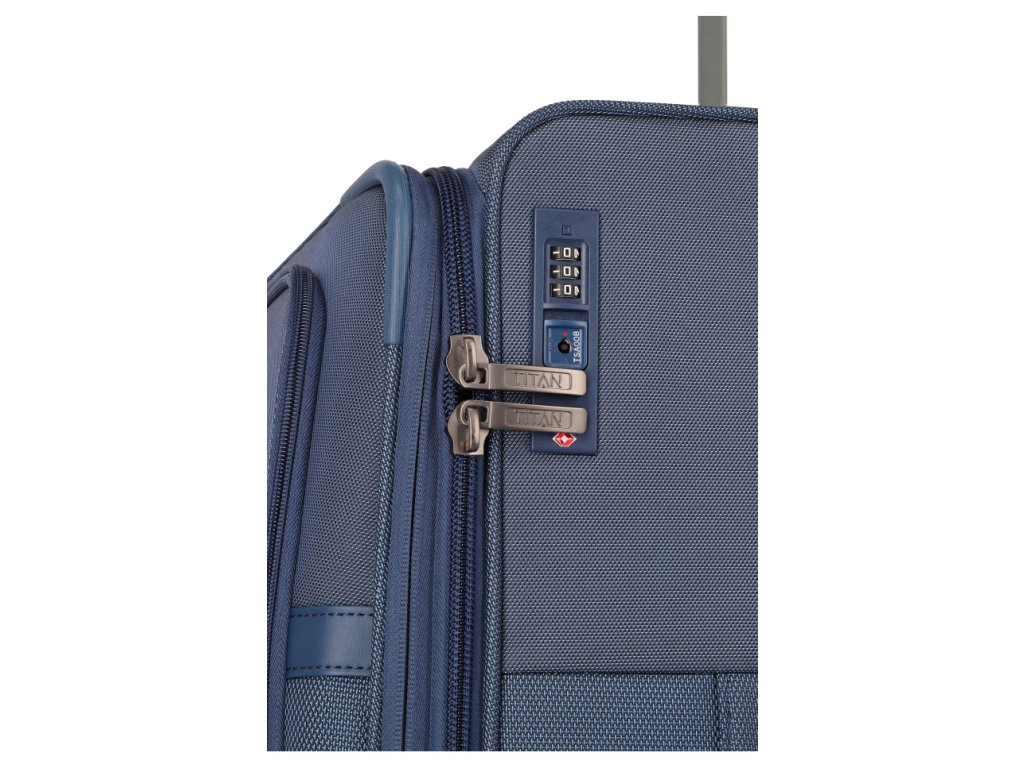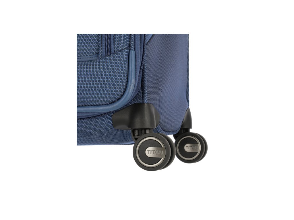 Cestovní textilní kufr na kolečkách německé značky Titan v atraktivní modré barvě. Vydejte se na cesty stylově s tímto trendy kufrem! Kvalitní zpracování a užité materiály se postarají o bezchybné cestování.