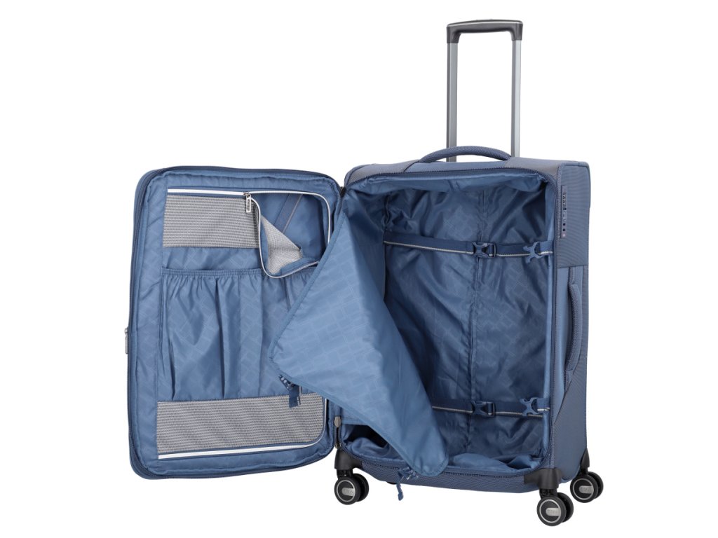 Cestovní textilní kufr na kolečkách německé značky Titan v atraktivní modré barvě. Vydejte se na cesty stylově s tímto trendy kufrem! Kvalitní zpracování a užité materiály se postarají o bezchybné cestování.