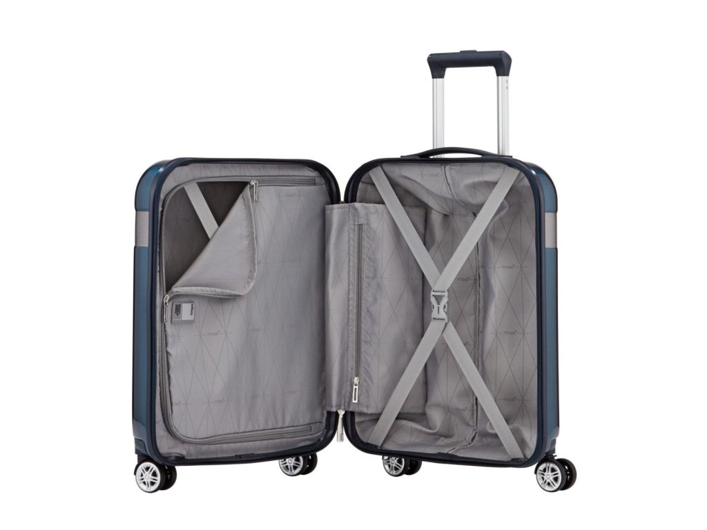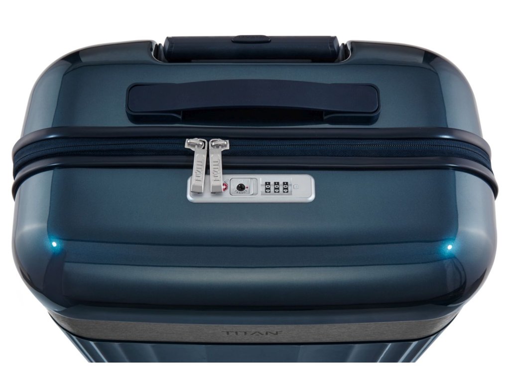Moderní designový cestovní kufr německé značky titan 55 cm limitované série spotlight flash v modré barvě north see.