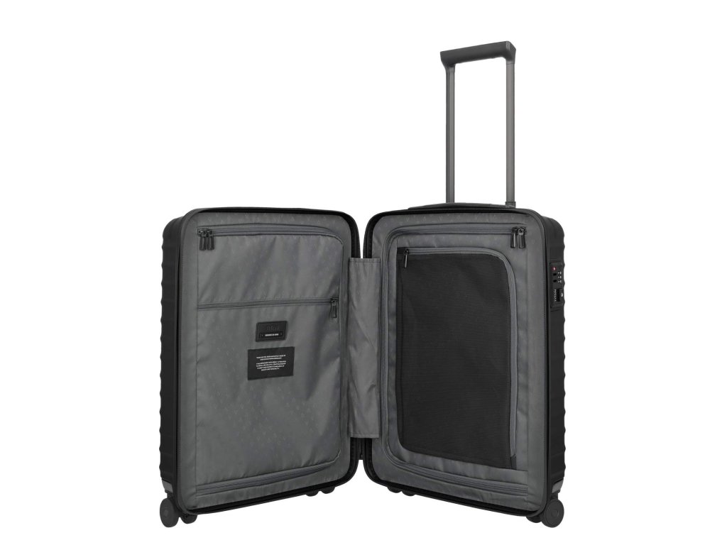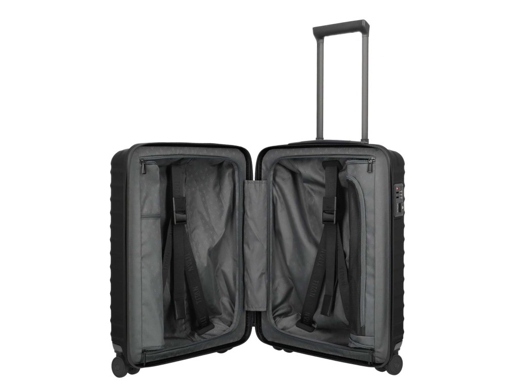 Luxusní skořepinový kabinový kufr na čtyřech kolečkách s integrovaným TSA zámkem německé značky Titan prémiové série Upgrade v oblíbené černé ( Nightshade Black ) barvě. Kufr, díky kterému se každá cesta cítí jako UPGRADE. Vyroben ze 100% polykarbonátu, spojuje prvotřídní materiály s důrazem na detail v každé součástce. Je vybaven vodoodpudivým zipem a mimořádně odolným povrchem proti poškrábání – kvalita a design v dokonalé rovnováze.