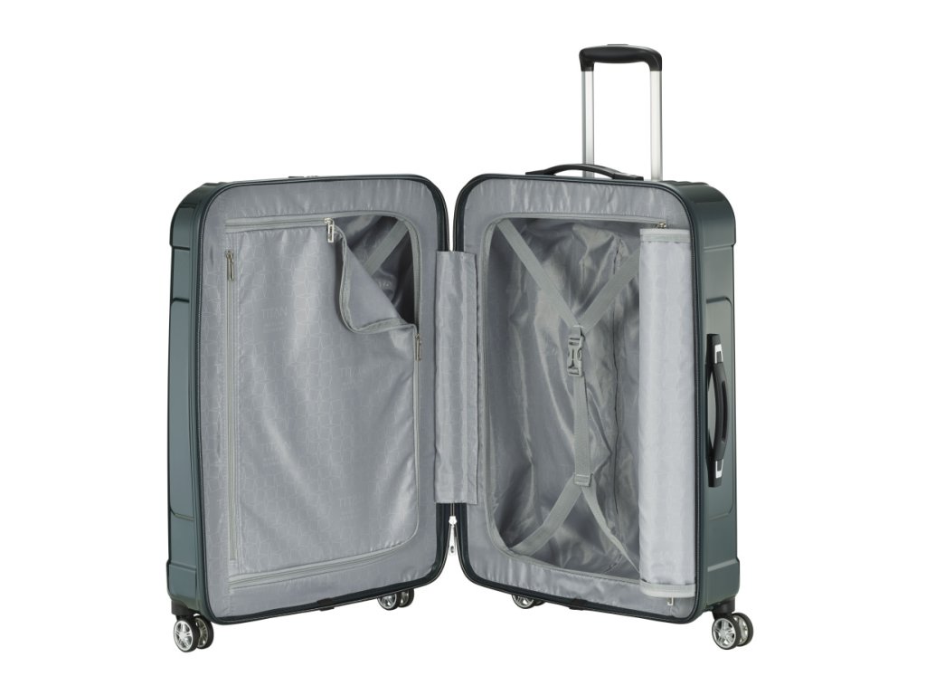 Středně velký cestovní elegantní kufr s lesklým povrchem značky Titan v tmavě zelené barvě. Tento šmrncovní odlehčený kufr splní nároky i náročnějších uživatelů, je precizně zpracován a opravdu kvalitně vyroben. Užijte si cestování se špičkovými kufry Titan.