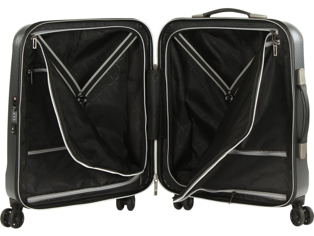- 4 otočná dvou kolečka na rozích kufru pro skvělou stabilitu a ovladatelnost.