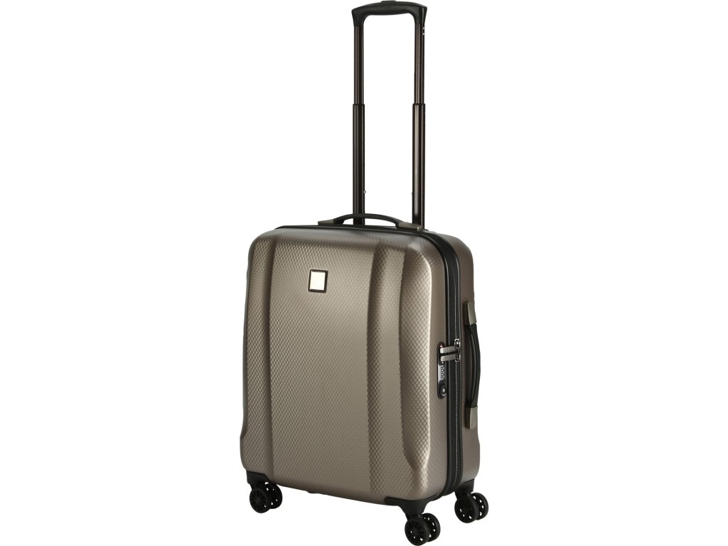 Luxusní plastový kufr německé značky titan ze série xenon deluxe 55 cm v šampaňské barvě se strukturovaným povrchem.