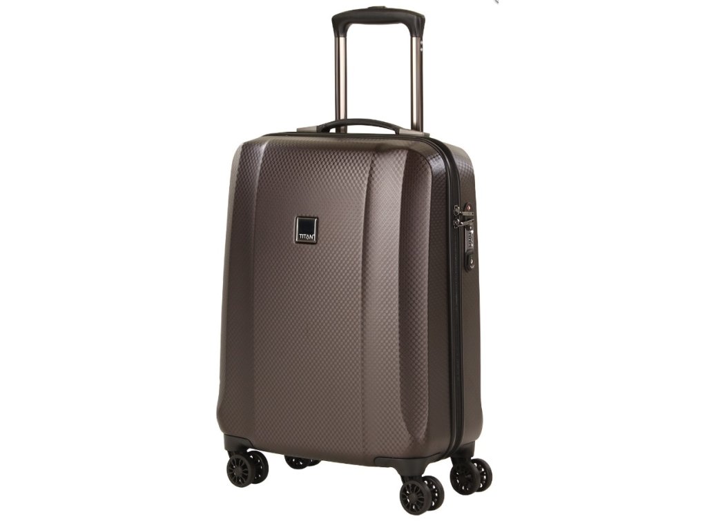 Luxusní plastový kufr německé značky titan ze série xenon deluxe 55 cm v hnědé barvě se strukturovaným povrchem.