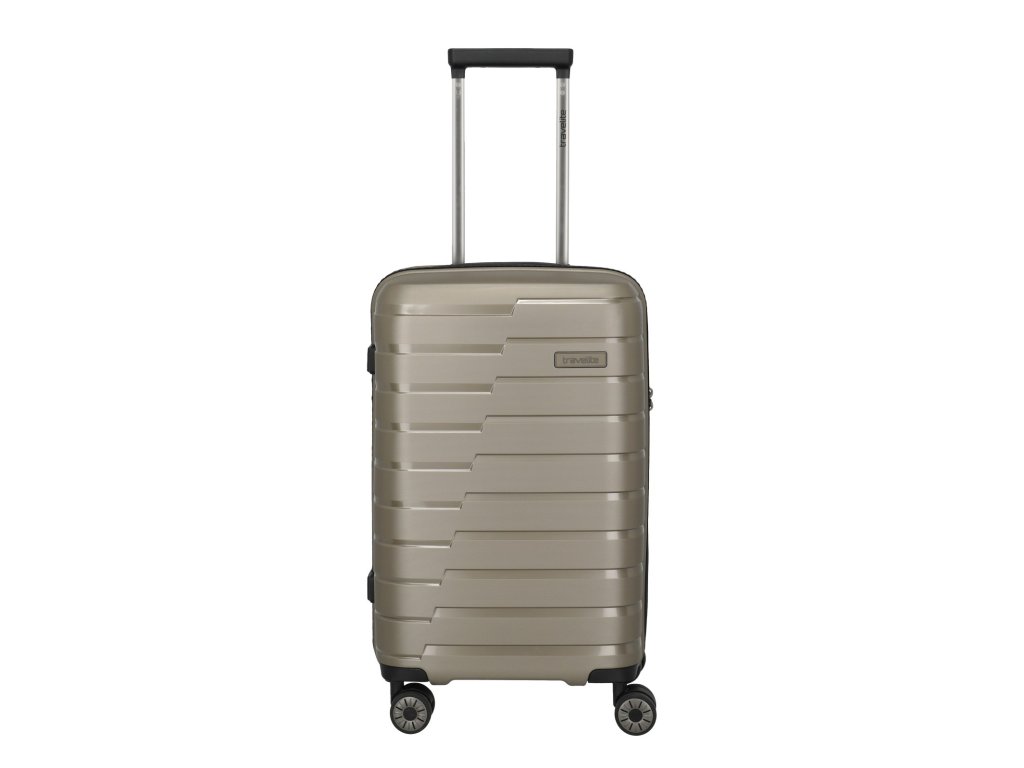 Skořepinový cestovní kufr velikosti S značky Travelite série Air Base v moderní šampaňské barvě. Série Air Base se rozšiřuje o nový rozměr. Díky svým novým proporcím je tento oblíbený kufr ideálním společníkem pro cestování s KLM a Air France. Vydejte se na cesty stylově a spolehněte se na kvalitní kufry firmy Travelite, které jsou vyrobeny z velmi odolného materiálu polyproplylen.