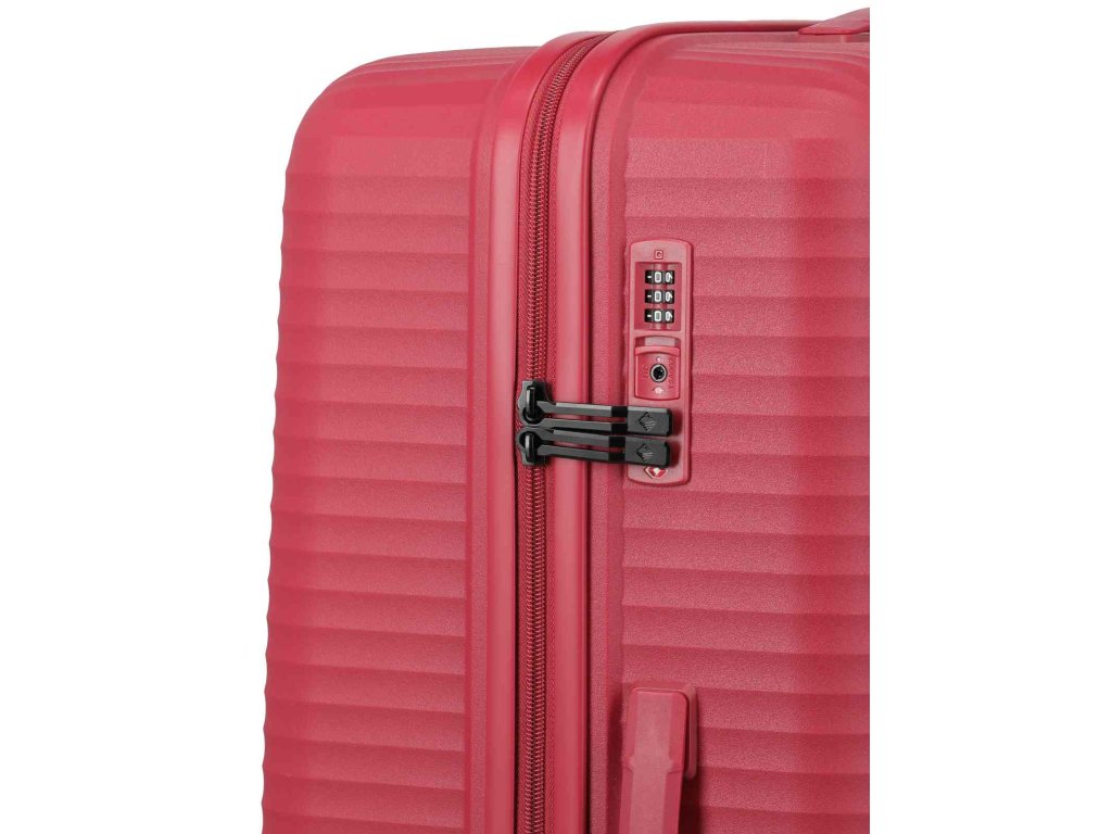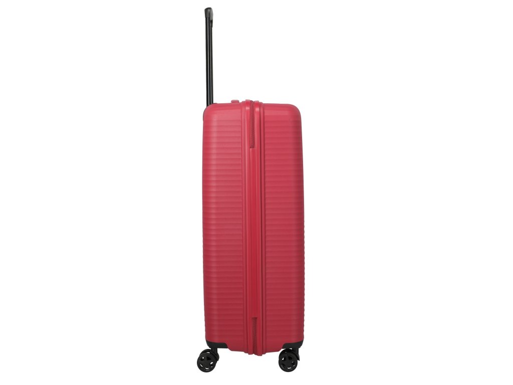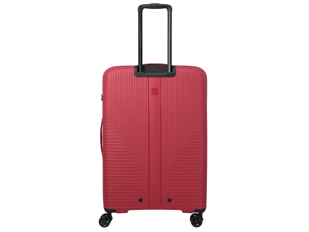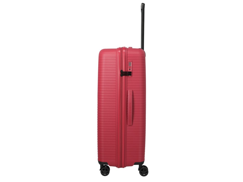 Skořepinový ultralehký cestovní kufr velikosti L značky Travelite série Air stripe v červené barvě. Protože velká dobrodružství potřebují prostor.