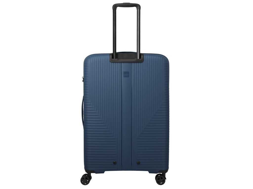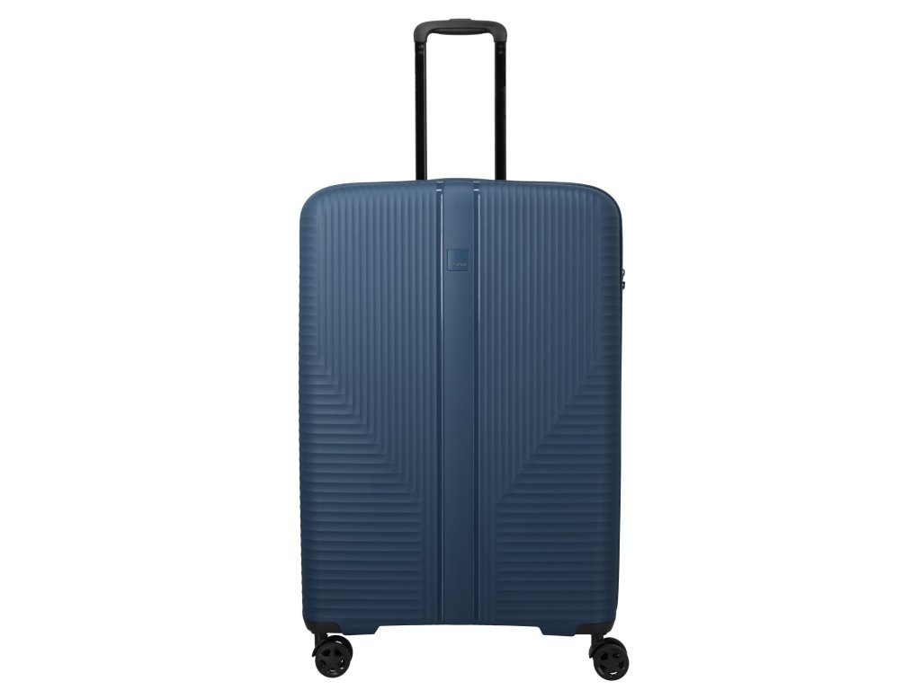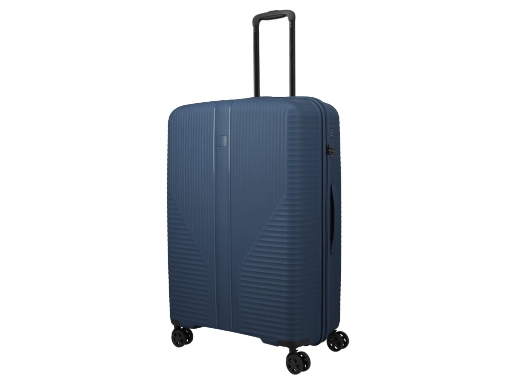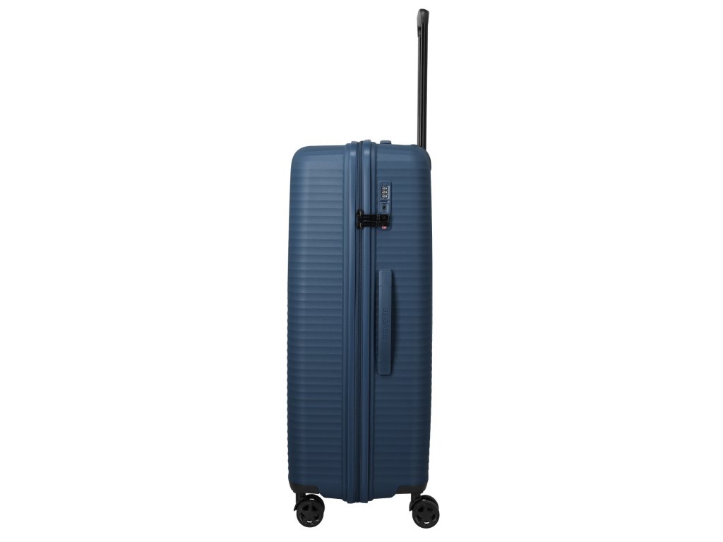 Skořepinový ultralehký cestovní kufr velikosti L značky Travelite série Air stripe v tmavě modré barvě. Protože velká dobrodružství potřebují prostor.