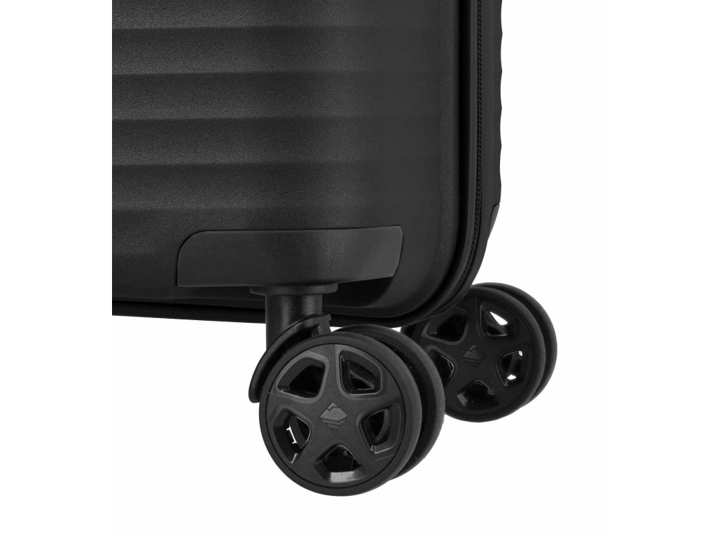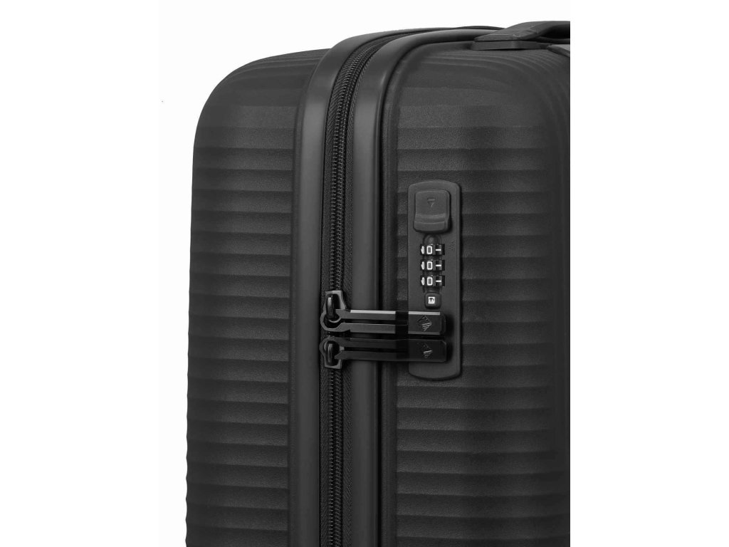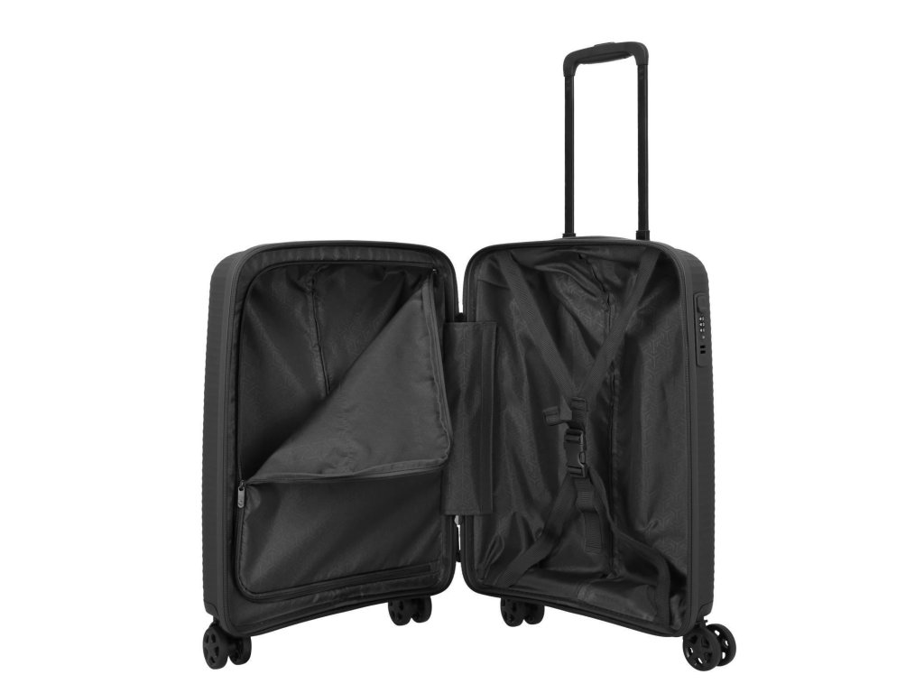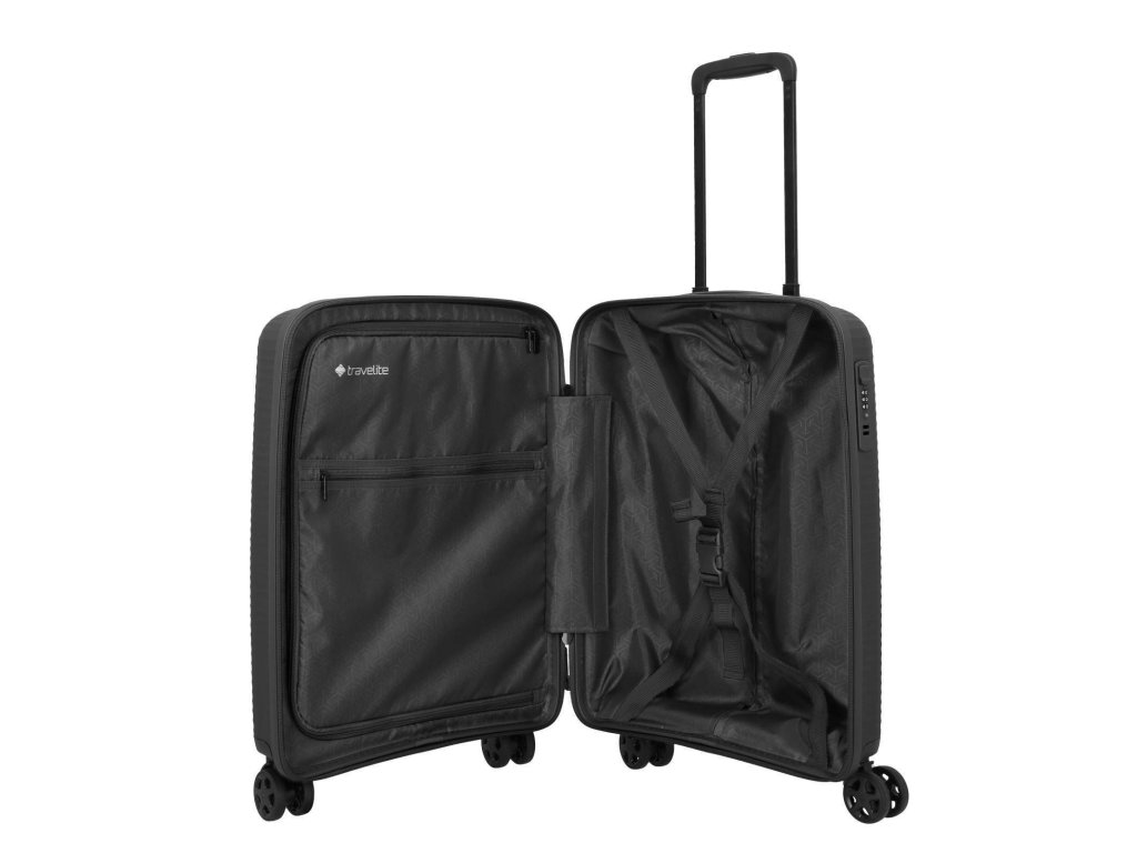Skořepinový ultralehký cestovní kufr velikosti S značky Travelite série Air stripe v oblíbené černé barvě. Vaše příruční zavazadlo, vaše rychlost. Jste neustále v pohybu? Pak potřebujete kufr, který s vámi snadno drží krok. Tento cestovní kufřík hladce klouže po jakémkoli povrchu díky tichým dvojitým kolečkům. Odolná skořepina z polypropylenu chrání obsah před vnějšími vlivy, zatímco vnitřní přepážky a popruhy udrží vše na svém místě. Praktický, stylový, spolehlivý – váš dokonalý společník na cesty!