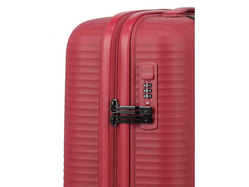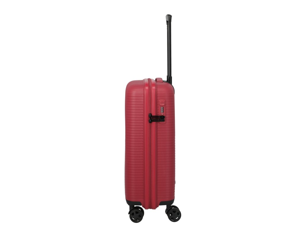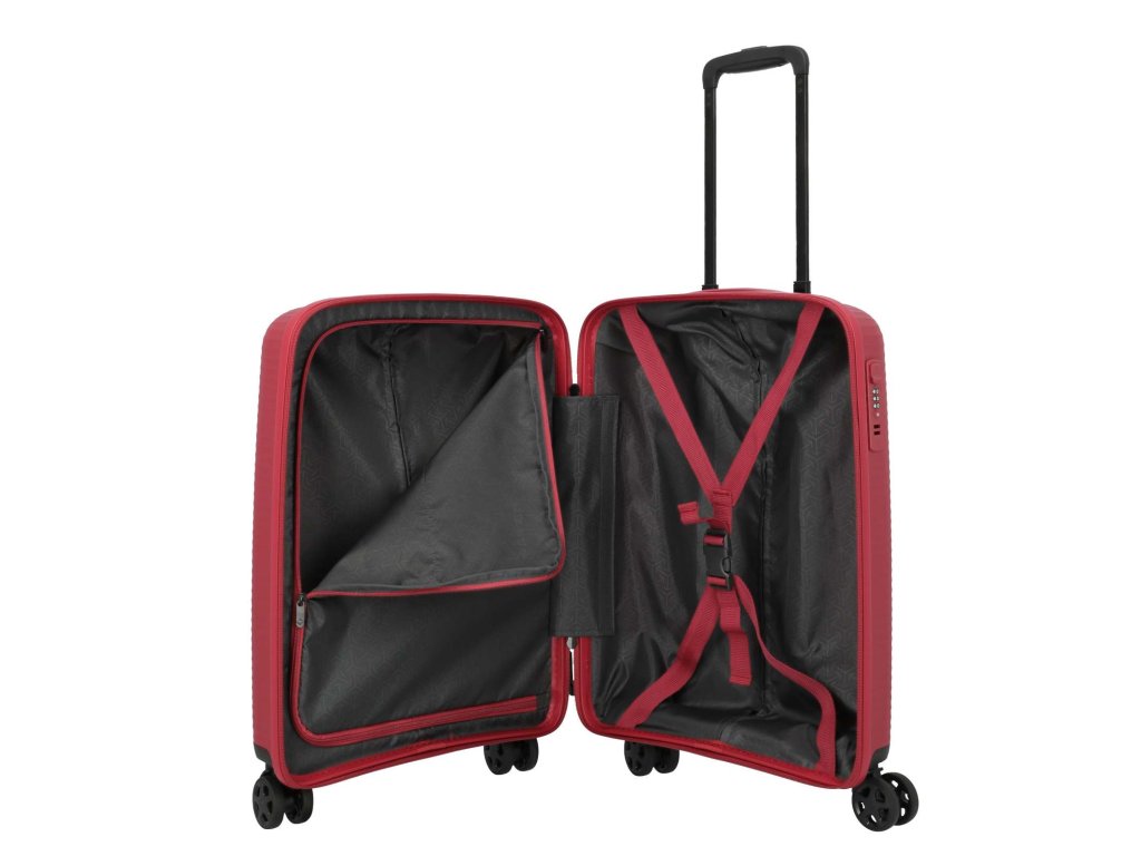 Skořepinový ultralehký cestovní kufr velikosti S značky Travelite série Air stripe v červené barvě. Vaše příruční zavazadlo, vaše rychlost. Jste neustále v pohybu? Pak potřebujete kufr, který s vámi snadno drží krok. Tento cestovní kufřík hladce klouže po jakémkoli povrchu díky tichým dvojitým kolečkům. Odolná skořepina z polypropylenu chrání obsah před vnějšími vlivy, zatímco vnitřní přepážky a popruhy udrží vše na svém místě. Praktický, stylový, spolehlivý – váš dokonalý společník na cesty!
