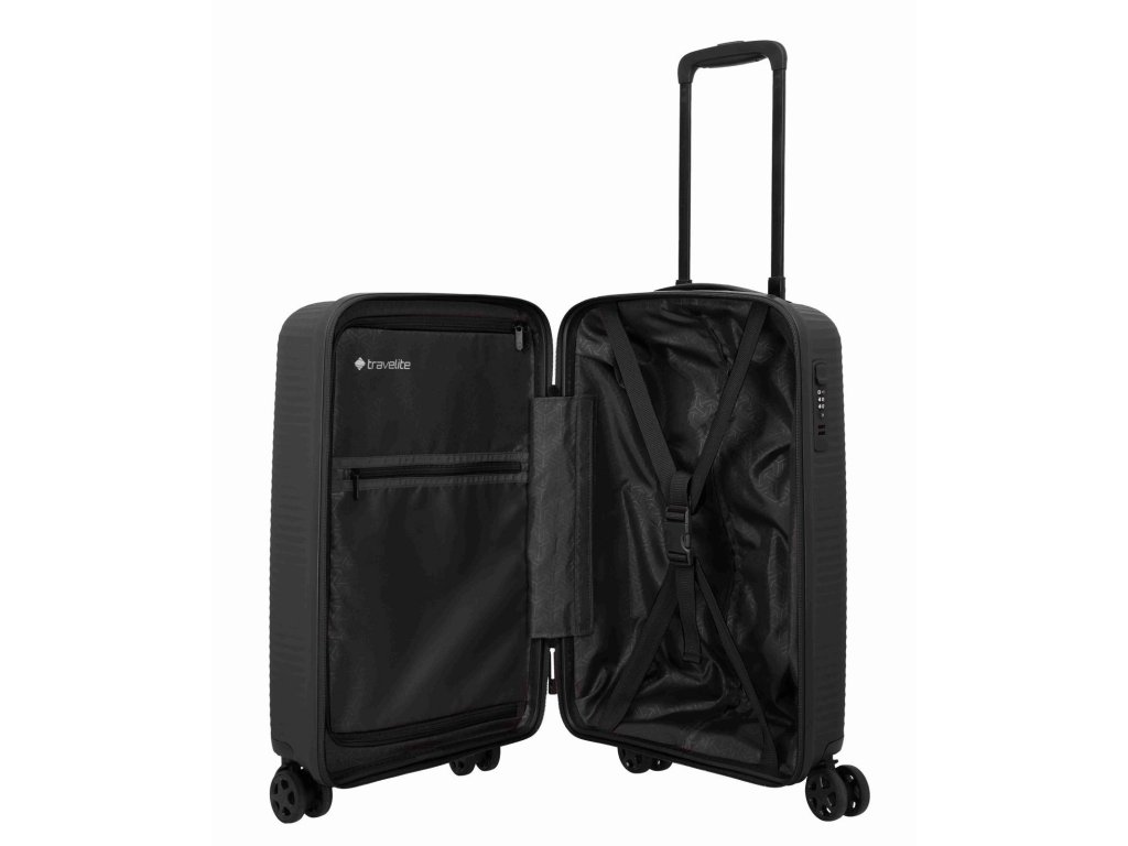 Skořepinový ultralehký SLIM cestovní kufr velikosti S značky Travelite série Air stripe v oblíbené černé barvě. Rozměr je přesně vhodný jako kabinové zavazadlo pro letecké společnosti KLM a Air France ( údaj Leden 2025 ) nutno vždy ověřit zda se v čase nezměnilo. Vaše příruční zavazadlo, vaše rychlost. Jste neustále v pohybu? Pak potřebujete kufr, který s vámi snadno drží krok. Tento cestovní SLIM kufřík hladce klouže po jakémkoli povrchu díky tichým dvojitým kolečkům. Odolná skořepina z polypropylenu chrání obsah před vnějšími vlivy, zatímco vnitřní přepážky a popruhy udrží vše na svém místě. Praktický, stylový, spolehlivý – váš dokonalý společník na cesty!