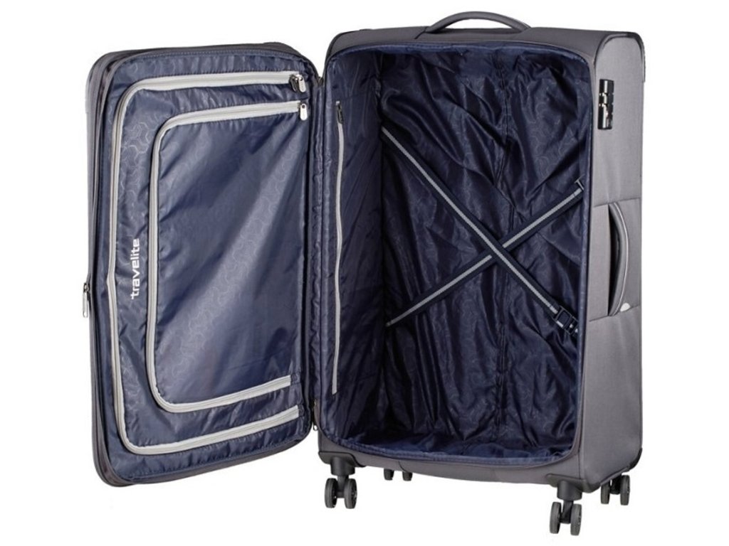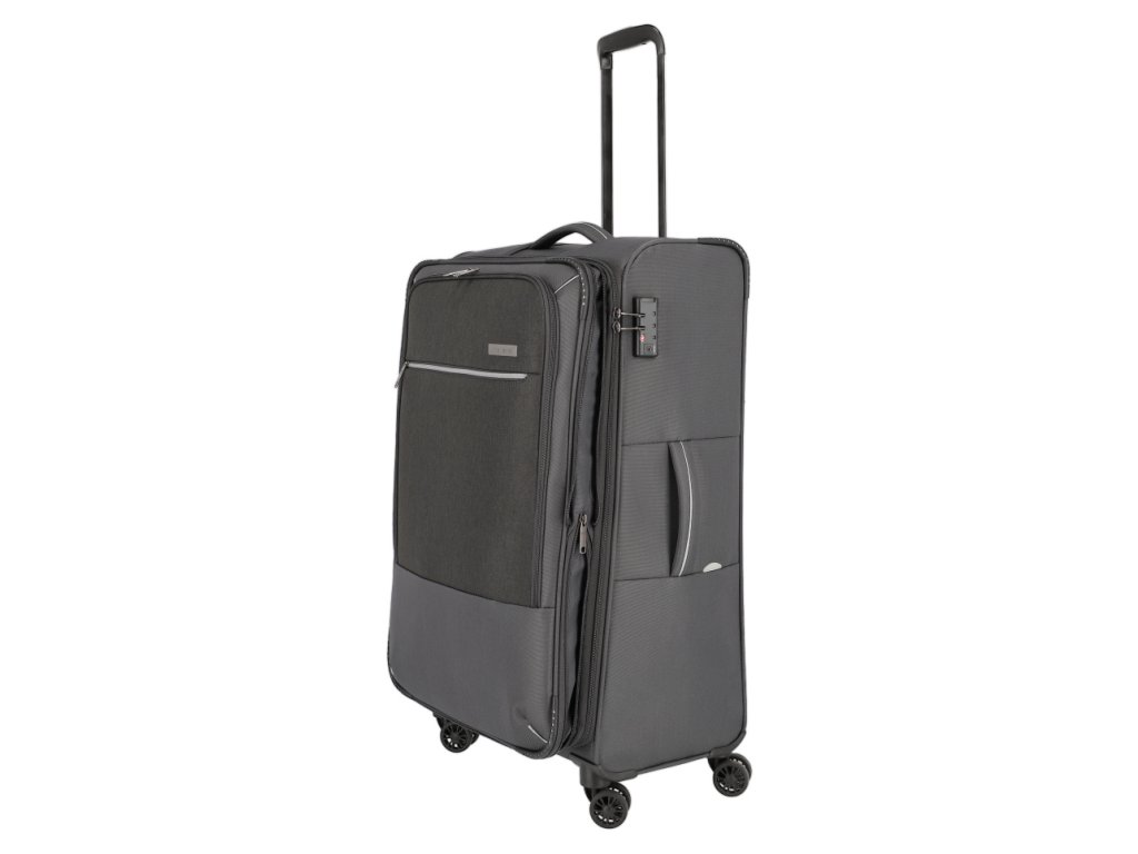 Cestovní látkový kufr značky Travelite v moderní antracitové barvě. Užijte si cestování s látkovými kufry série Arona od Travelite! Překvapí Vás spolehlivostí, funkčností a množstvím kapes.