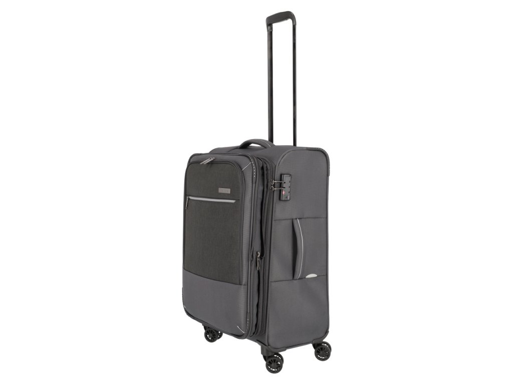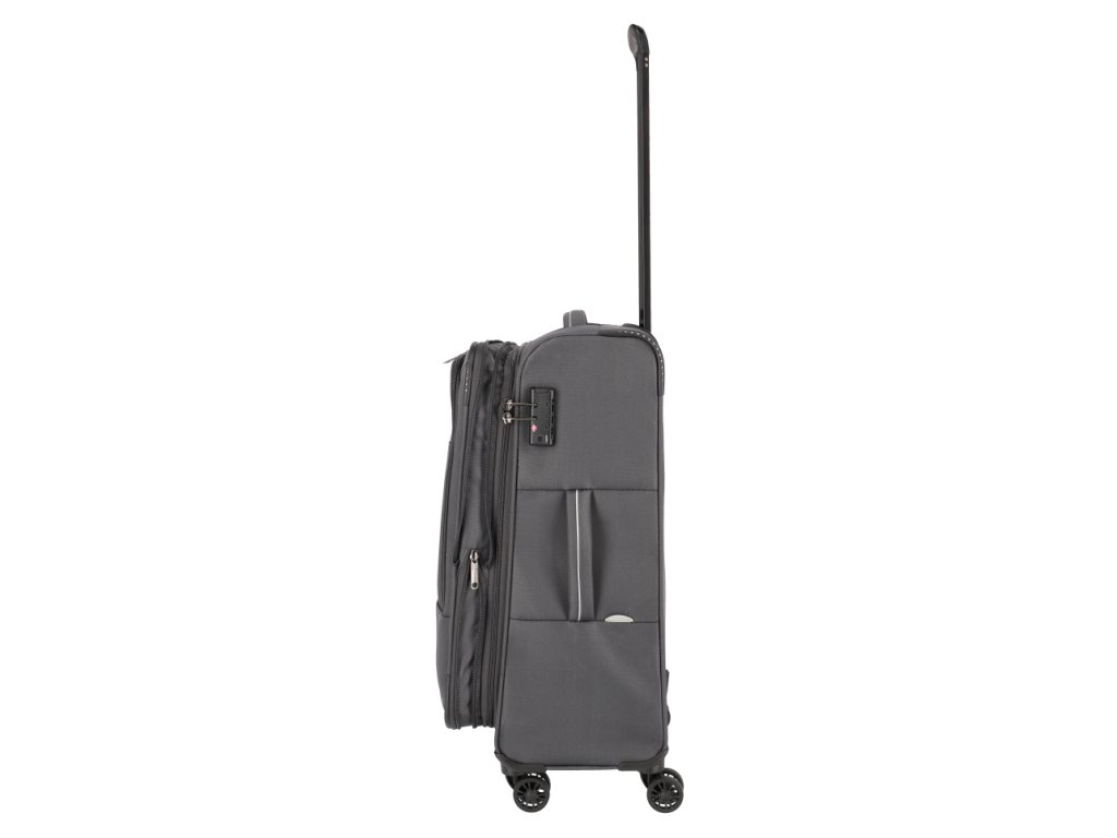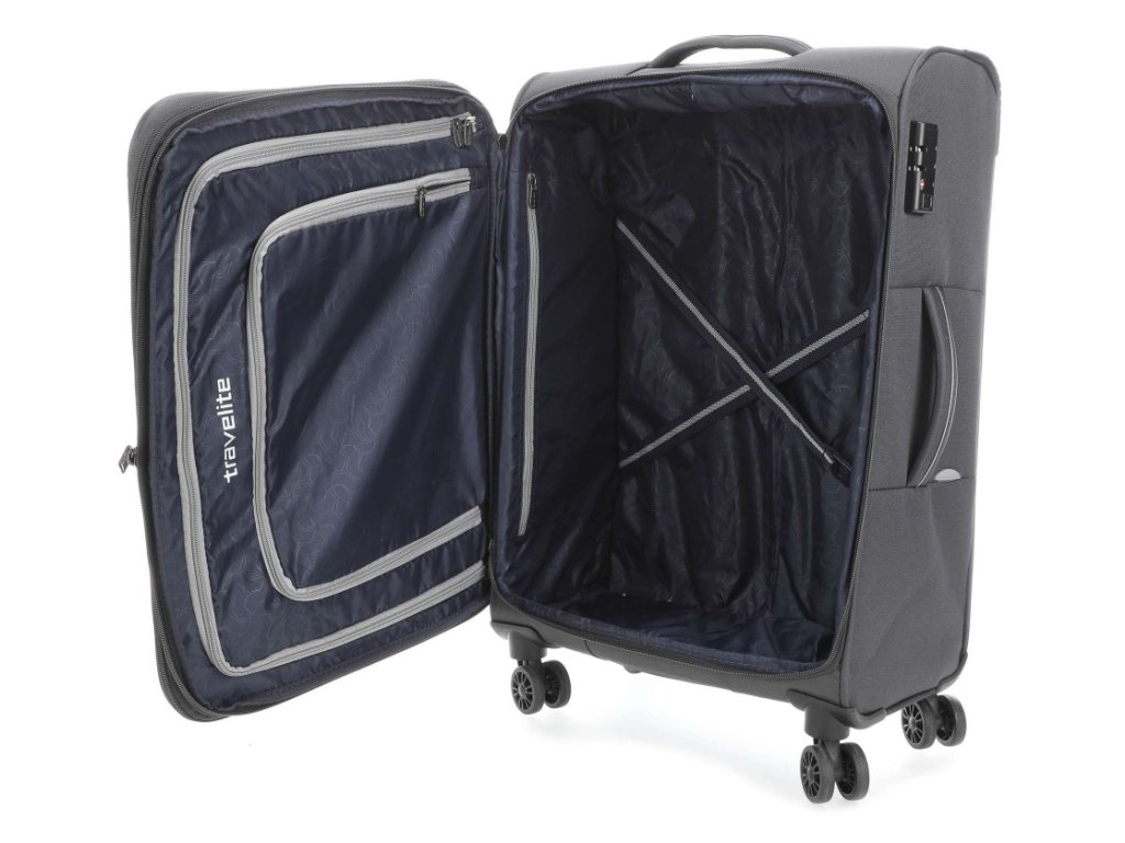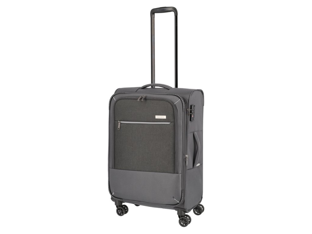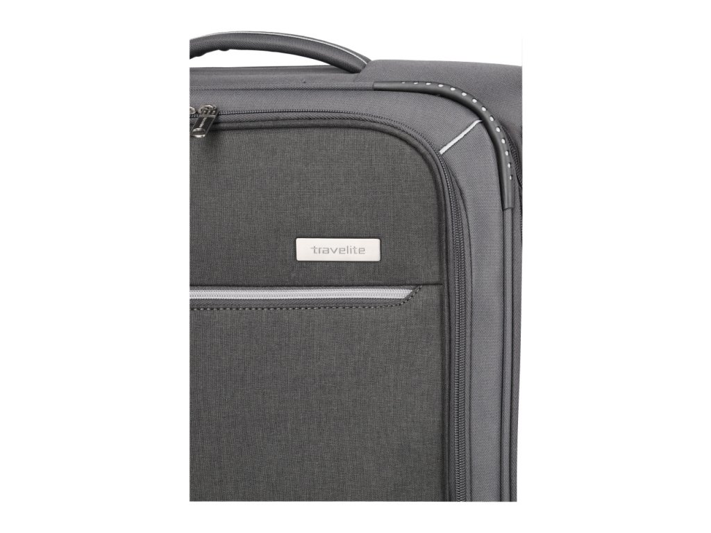 Cestovní látkový kufr značky Travelite v moderní antracitové barvě. Užijte si cestování s látkovými kufry série Arona od Travelite! Překvapí Vás spolehlivostí, funkčností a množstvím kapes.