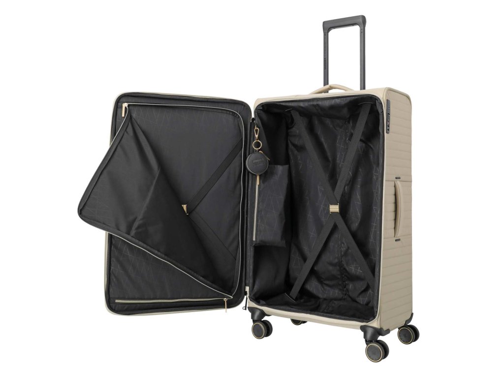 Textilní kvalitní kufr německé značky Travelite 80 cm v zajímavé pískové barvě série Barbara Stepp. Kufr velikosti L z kolekce BARBARA & travelite je jako stvořený pro delší výlety. Zvenku zaujme elegantními detaily a integrovaným TSA zámkem, uvnitř pak promyšlenou organizací – zipové kapsy, fixační popruhy, vak na boty či prádlo a vyjímatelné pouzdro na šperky. Dvojitá kolečka, ochrana spodní hrany a praktické madlo zajistí pohodlné cestování bez starostí, i když jste na cestách déle.