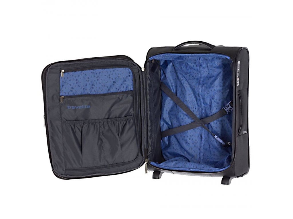 Moderní textilní kufr německé značky travelite 53 cm linie capri v černé barvě.
