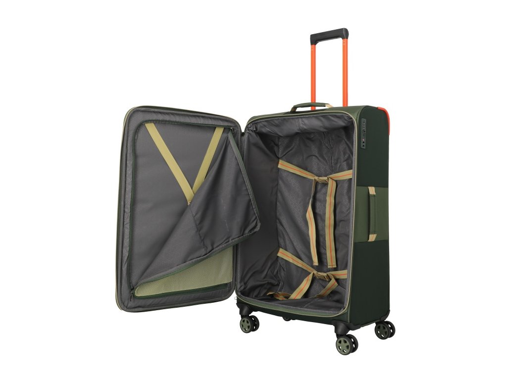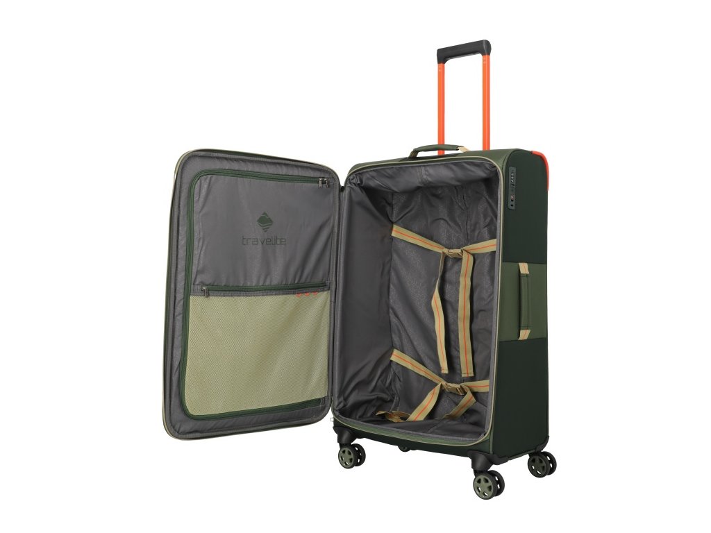 Moderní textilní kufr německé značky Travelite 77 cm linie Color Craze v olivové barvě. S reflexními zipy, kontrastními rukojeťmi a robustním designem tento kufřík dokonale spojuje styl a funkčnost. Řada Color Craze je ideální volbou pro ty, kdo si dovolenou užívají aktivně a s energií. Díky výrazným barvám a hravému designu vás nikdo nepřehlédne. Nabízí širokou škálu modelů a praktických detailů – jednoduše parťák pro každé dobrodružství.