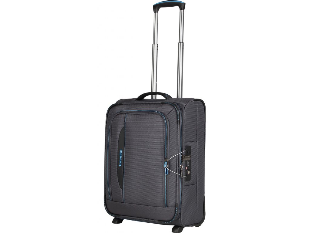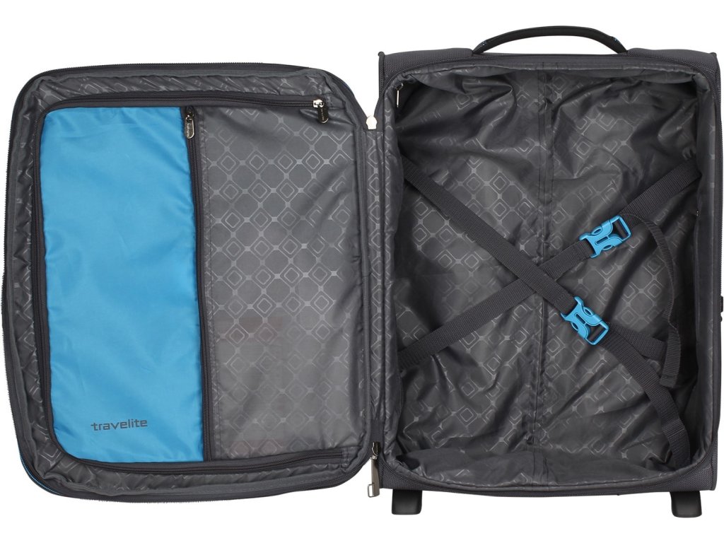 Propracovaný textilní kufr německé značky travelite 54 cm v antracitové barvě linie crosslite.