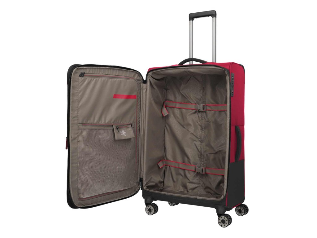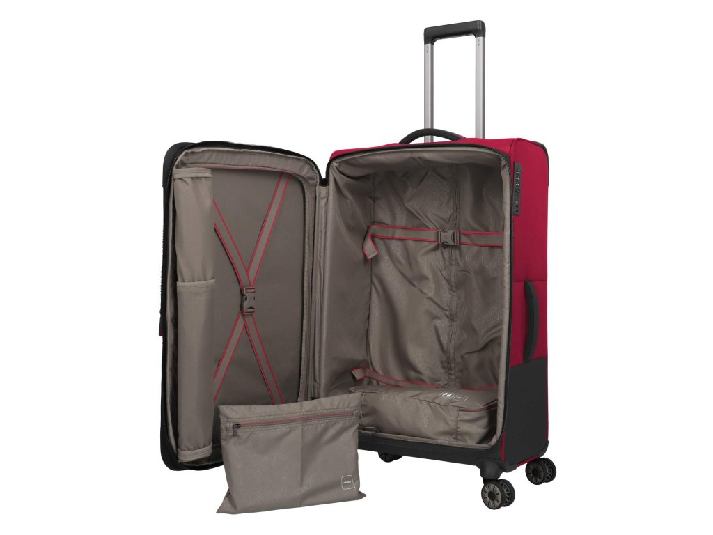 Textilní kufr německé značky Travelite 77 cm v tmavě červené barvě série Crosslite 5.0. Kaž