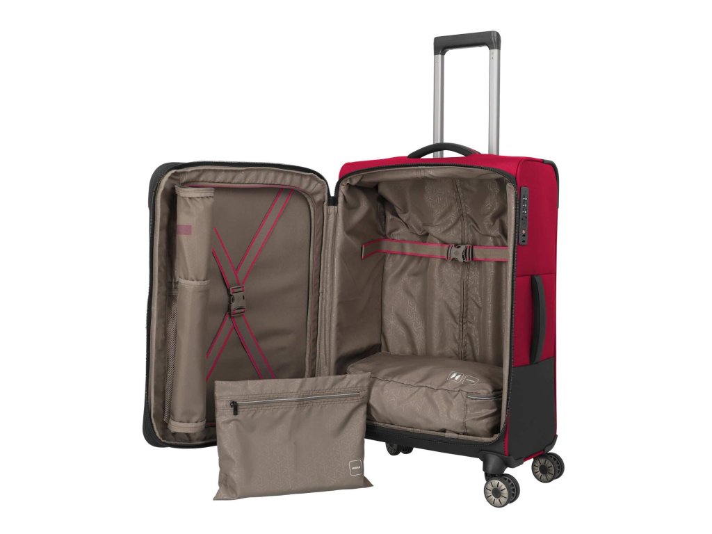 Textilní kufr německé značky Travelite 66 cm v tmavě červené barvě série Crosslite 5.0. Kaž