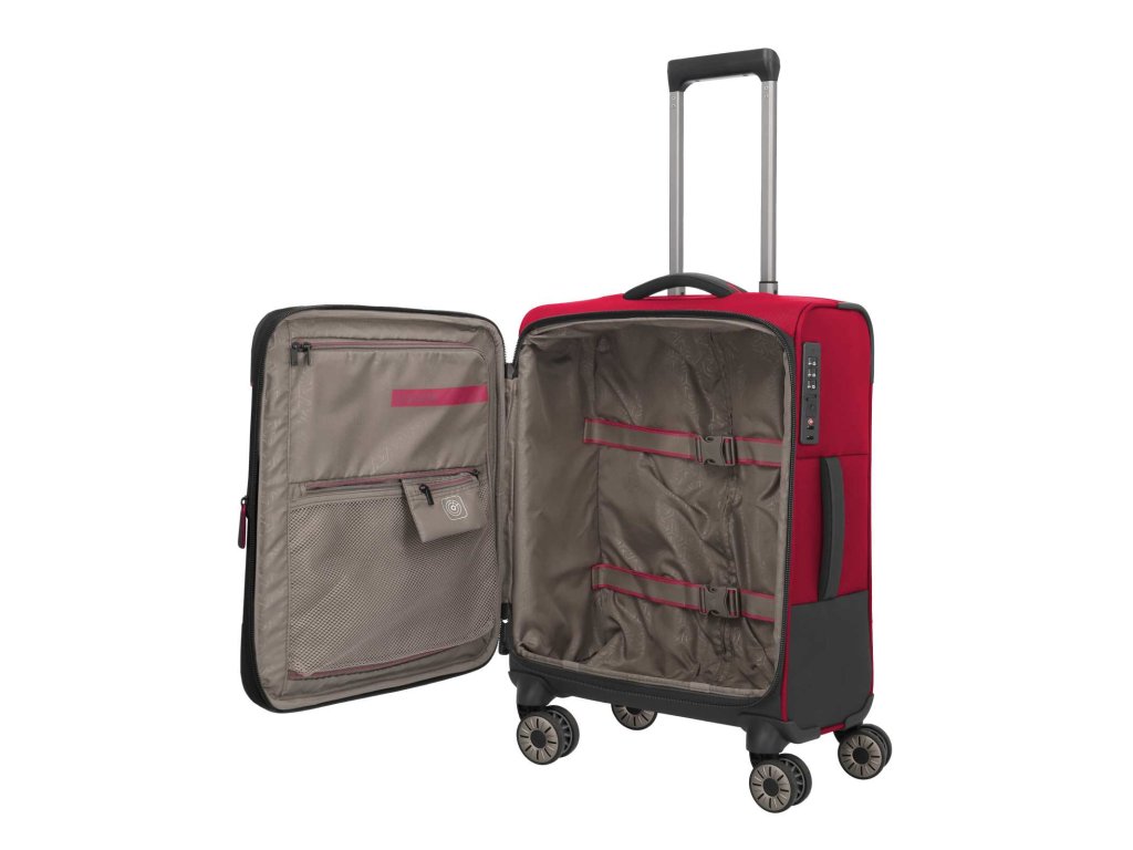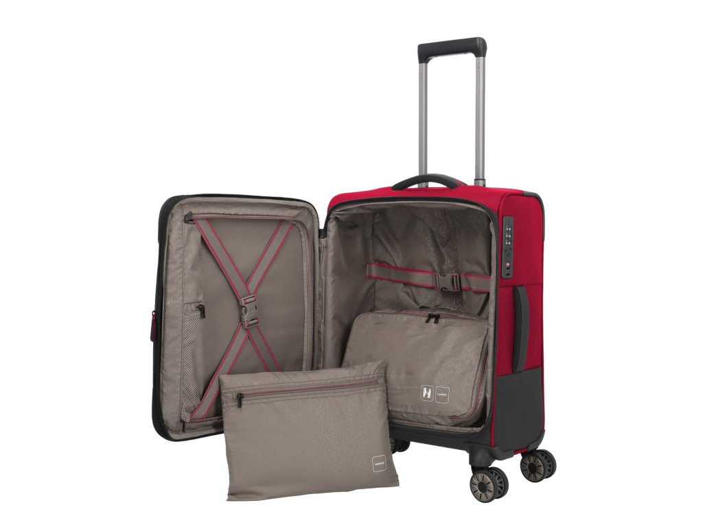 Textilní kufr německé značky Travelite 55 cm v tmavě červené barvě série Crosslite 5.0. Kaž