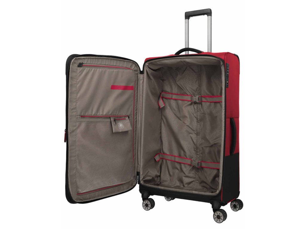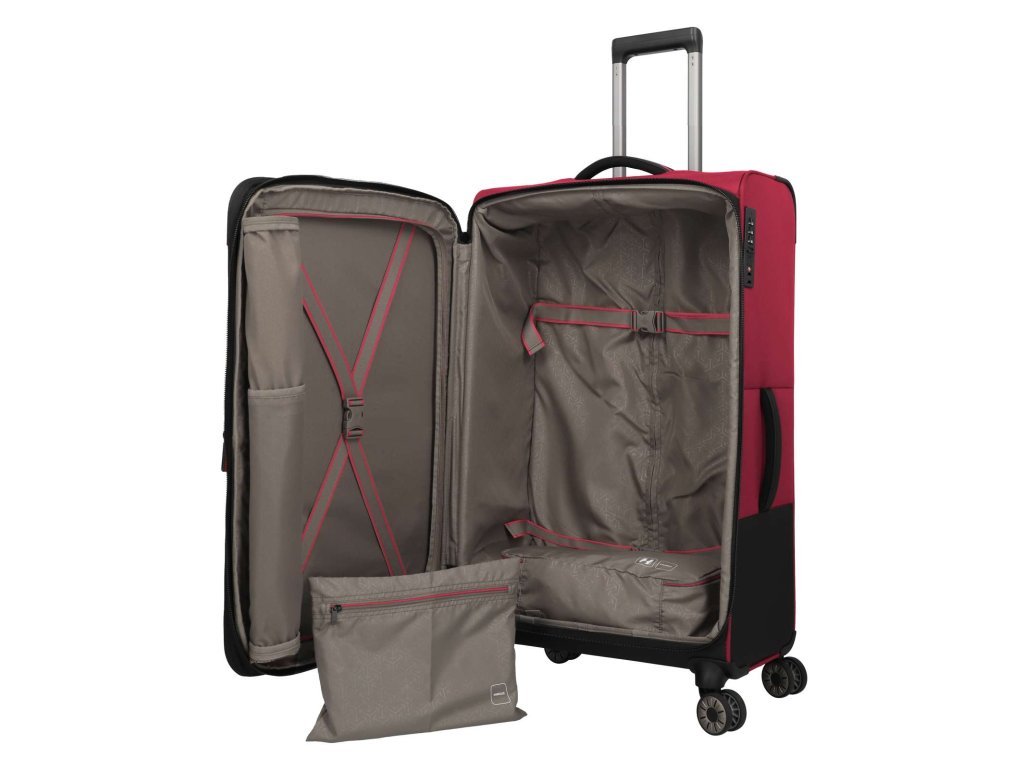 Textilní kufr německé značky Travelite 81 cm v tmavě červené barvě série Crosslite 5.0. Kaž