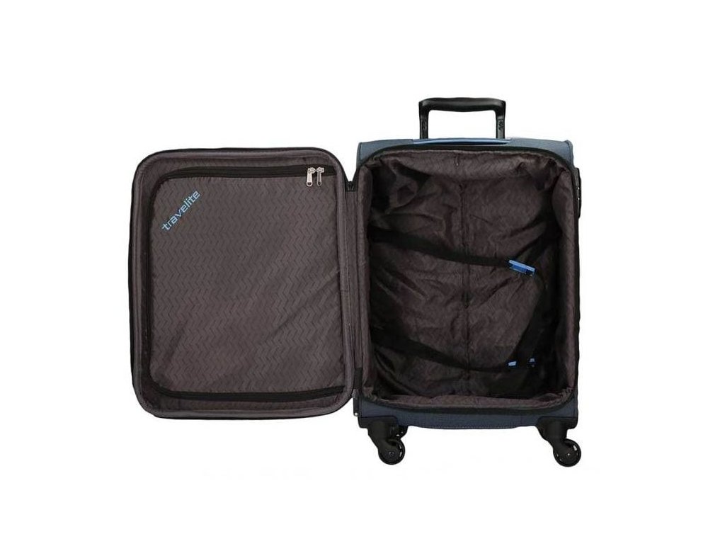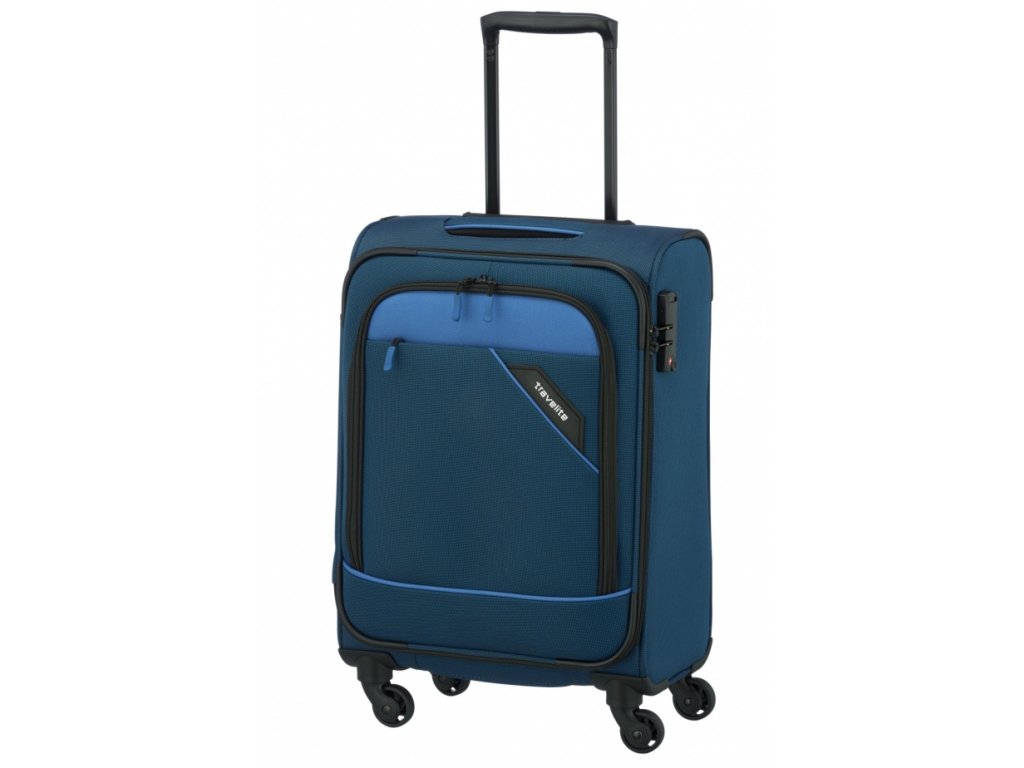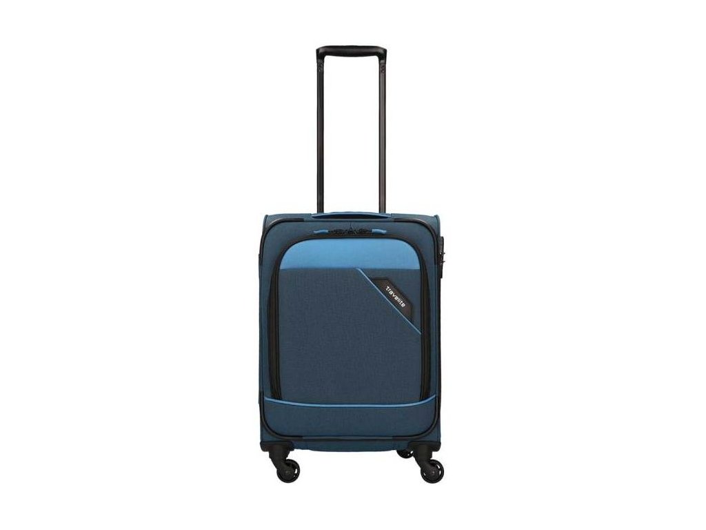 Textilní kufr německé značky travelite 55 cm v modré barvě série derby.- Textilní madlo pro nošení v ruce.