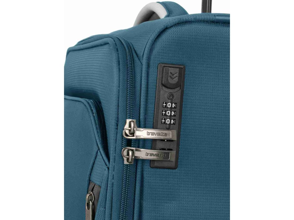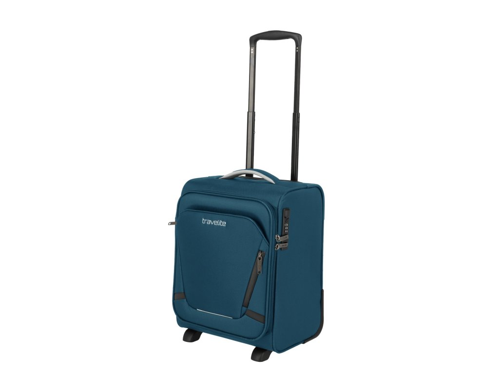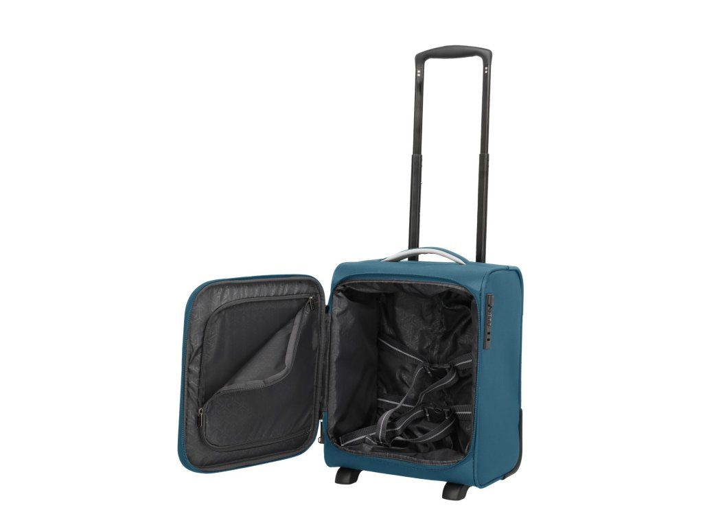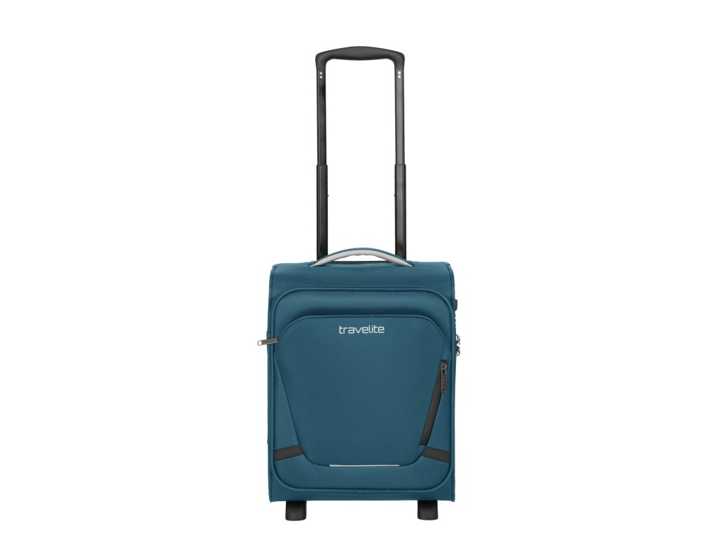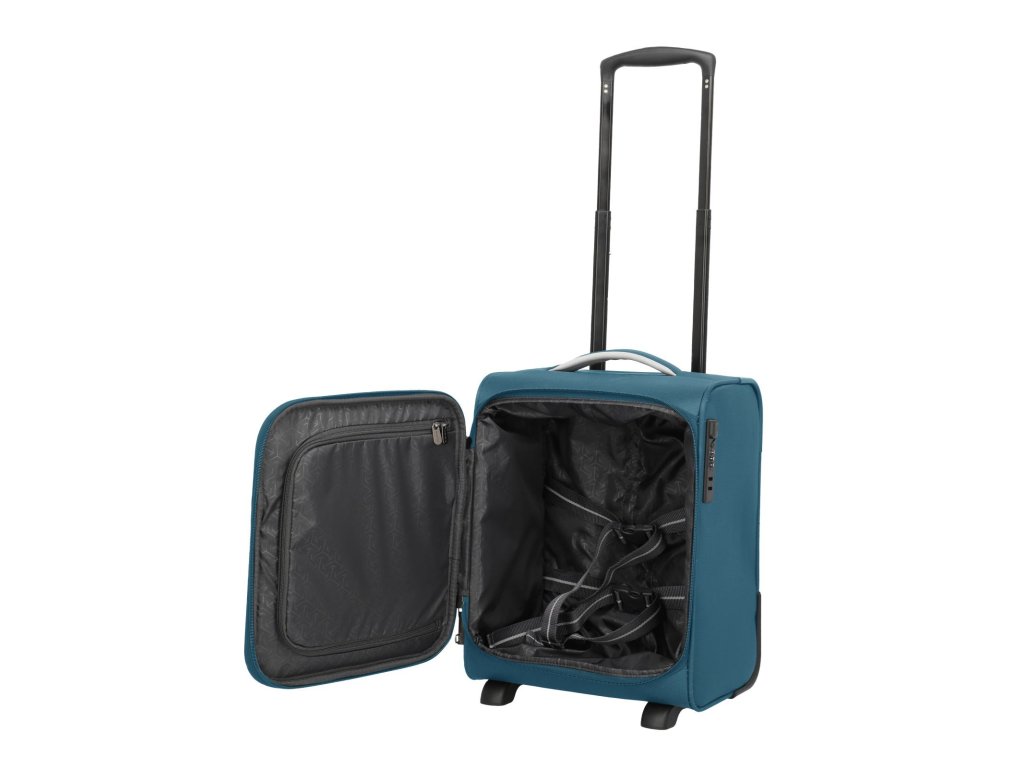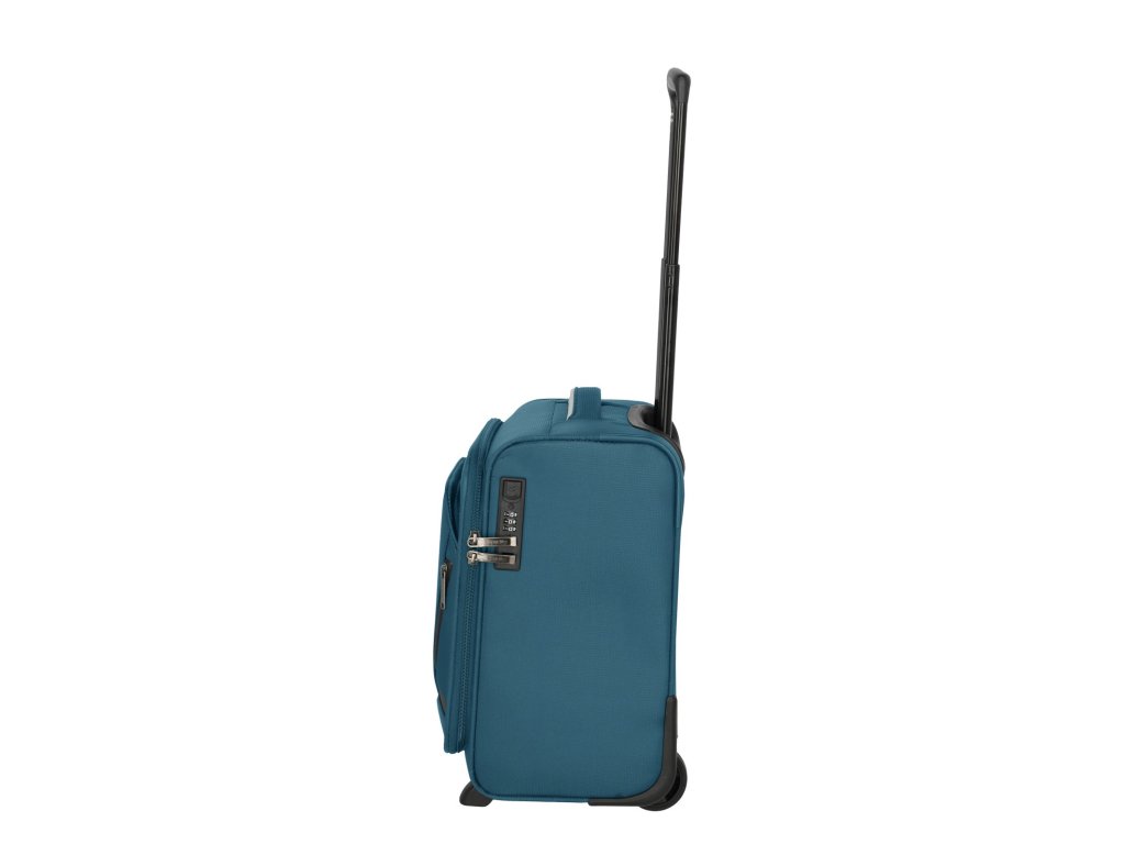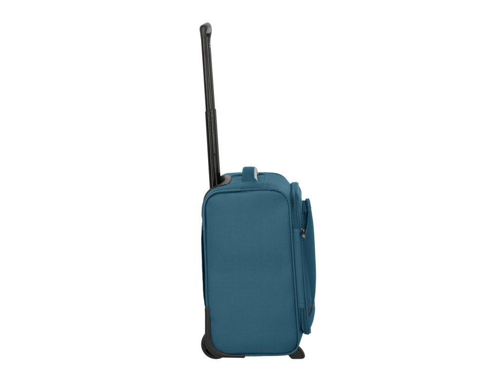 Textilní dvoukolečkový kabinový kufr německé značky Travelite 40 cm v petrolejové barvě série Jetpack. Kvalitně propracované kufry se stanou vašimi věrnými společníky na všech vašich cestách, ať už pracovních či odpočinkových. Toto palubní zavazadlo si můžete vzít s sebou do letadla, jak vyžaduje společnost Eurowings. Má rozměry, které akceptuje většina leteckých společností.