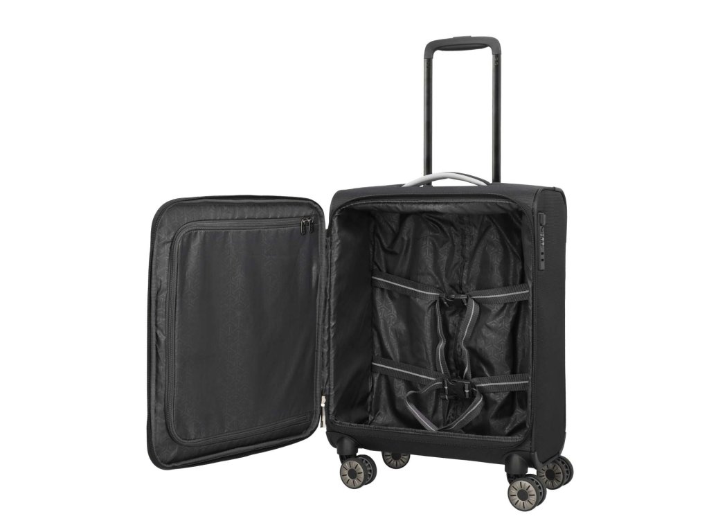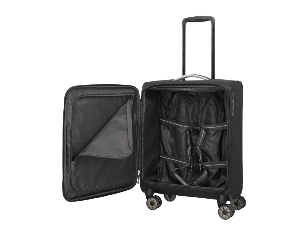 Textilní kabinový extra lehký kufr německé značky Travelite 55 cm v oblíbené černé barvě série Jetpack. Extra lehké a kvalitně propracované kufry se stanou vašimi věrnými společníky na všech vašich cestách, ať už pracovních či odpočinkových. Toto palubní zavazadlo si můžete vzít s sebou do letadla, jak vyžaduje společnost Ryanair a Condor. Má rozměry, které akceptuje většina leteckých společností.