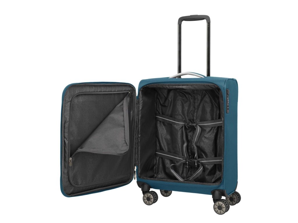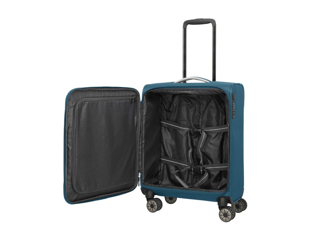 Textilní kabinový extra lehký kufr německé značky Travelite 55 cm v petrolejové barvě série Jetpack. Extra lehké a kvalitně propracované kufry se stanou vašimi věrnými společníky na všech vašich cestách, ať už pracovních či odpočinkových. Toto palubní zavazadlo si můžete vzít s sebou do letadla, jak vyžaduje společnost Ryanair a Condor. Má rozměry, které akceptuje většina leteckých společností.