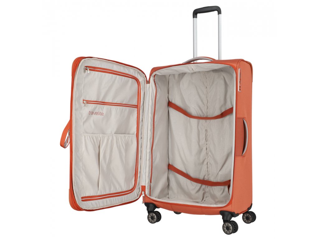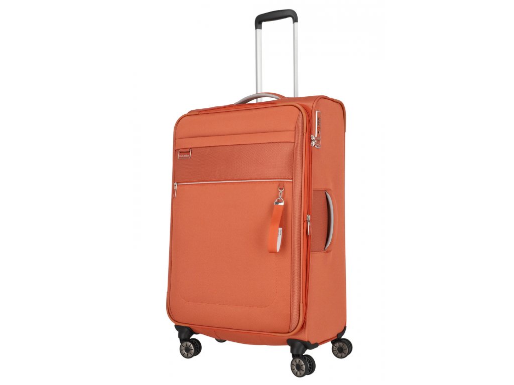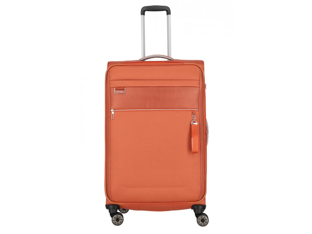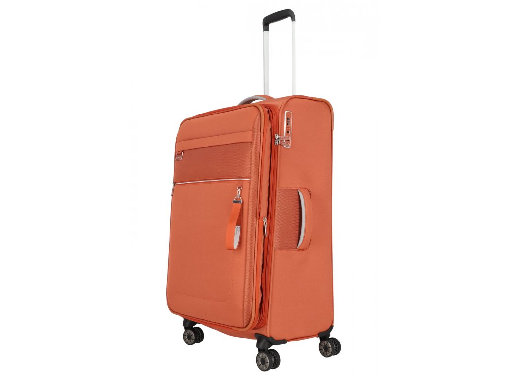 Moderní textilní kufr německé značky Travelite 77 cm linie Miigo v oranžové barvě. Všechny produkty z produktové řady Miigo překvapují svou neuvěřitelně nízkou hmotností, zároveň jsou propracované v každém detailu. S výrobky z řady Miigo můžete také udělat něco pro životní prostředí, protože všechny produkty jsou vyrobeny z recyklovaného materiálu.